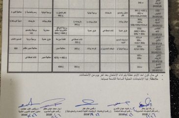 جدول امتحانات الفصل الاول للعام الداسي 2018/2019
