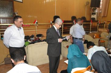 السيد رئيس جامعة القادسية الأستاذ الدكتوراحسان كاظم شريف القرشي المحترم يتفقد القاعات الامتحانية في كلية علوم الحاسوب وتكنولوجيا المعلومات