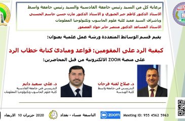برعاية السيد رئيس جامعة القادسية الأستاذ الدكتور كاظم جبر الجبوري المحترم وبإشراف السيد عميد كلية علوم الحاسوب وتكنولوجيا المعلومات المحترم يقيم قسم الوسائط محاضرة نوعية بعنوان (كيفية الرد على المقومين/قواعد […]