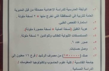 إستجابة لإستفسارات الطلبة حول متطلبات التقديم على الدراسة المسائية في الكلية تعلن وحدة التسجيل عن الأوراق الرسمية المطلوب من الطلبة إحضارها للتقديم والمتمثلة بالآتي:١-الوثيقة المدرسية للدراسة الإعدادية مصدقة من المديرية […]