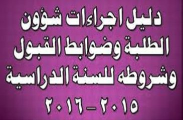 دليل اجراءات شؤون الطلبة وضوابط القبول وشروطة للسنة الدراسية 2015-2016