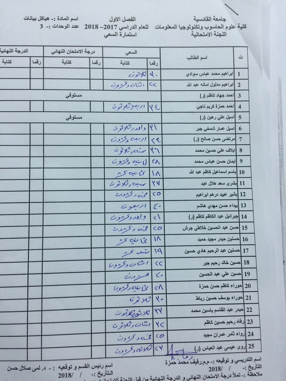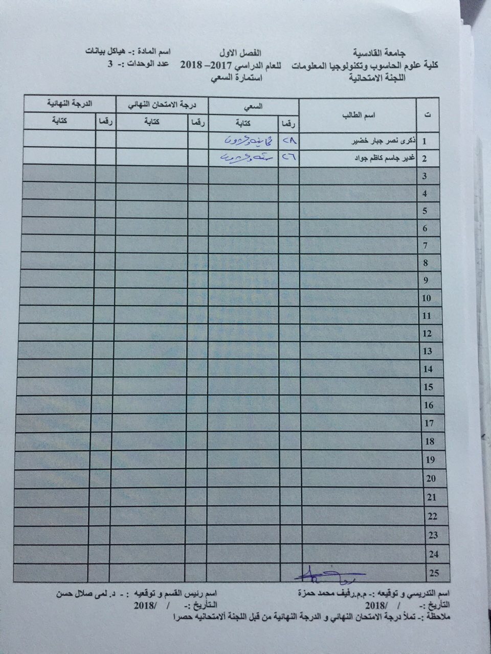 السعي السنوي لمادة هياكل بيانات لقسمي الوسائط المتعددة ونظم المعلومات
