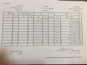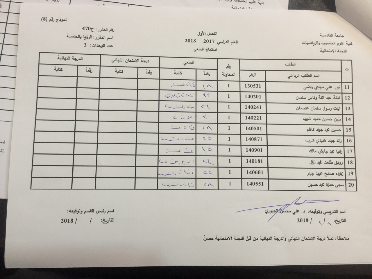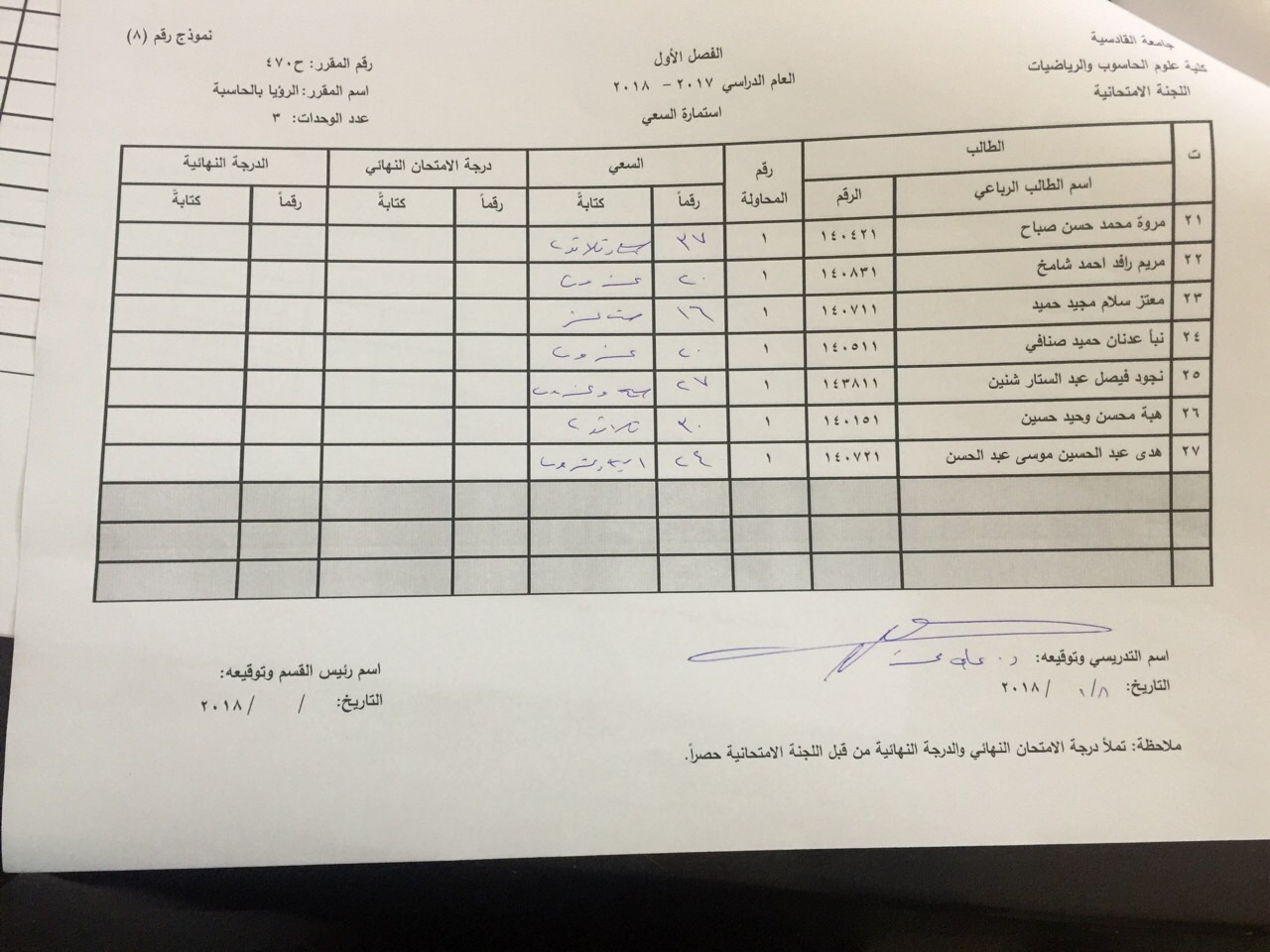 درجات السعي السنوي لمادة الرؤيا بالحاسبة