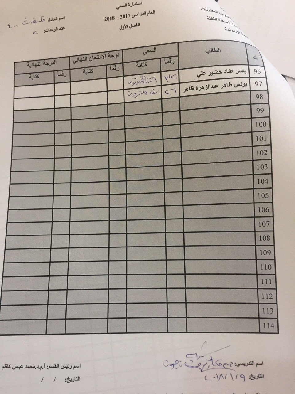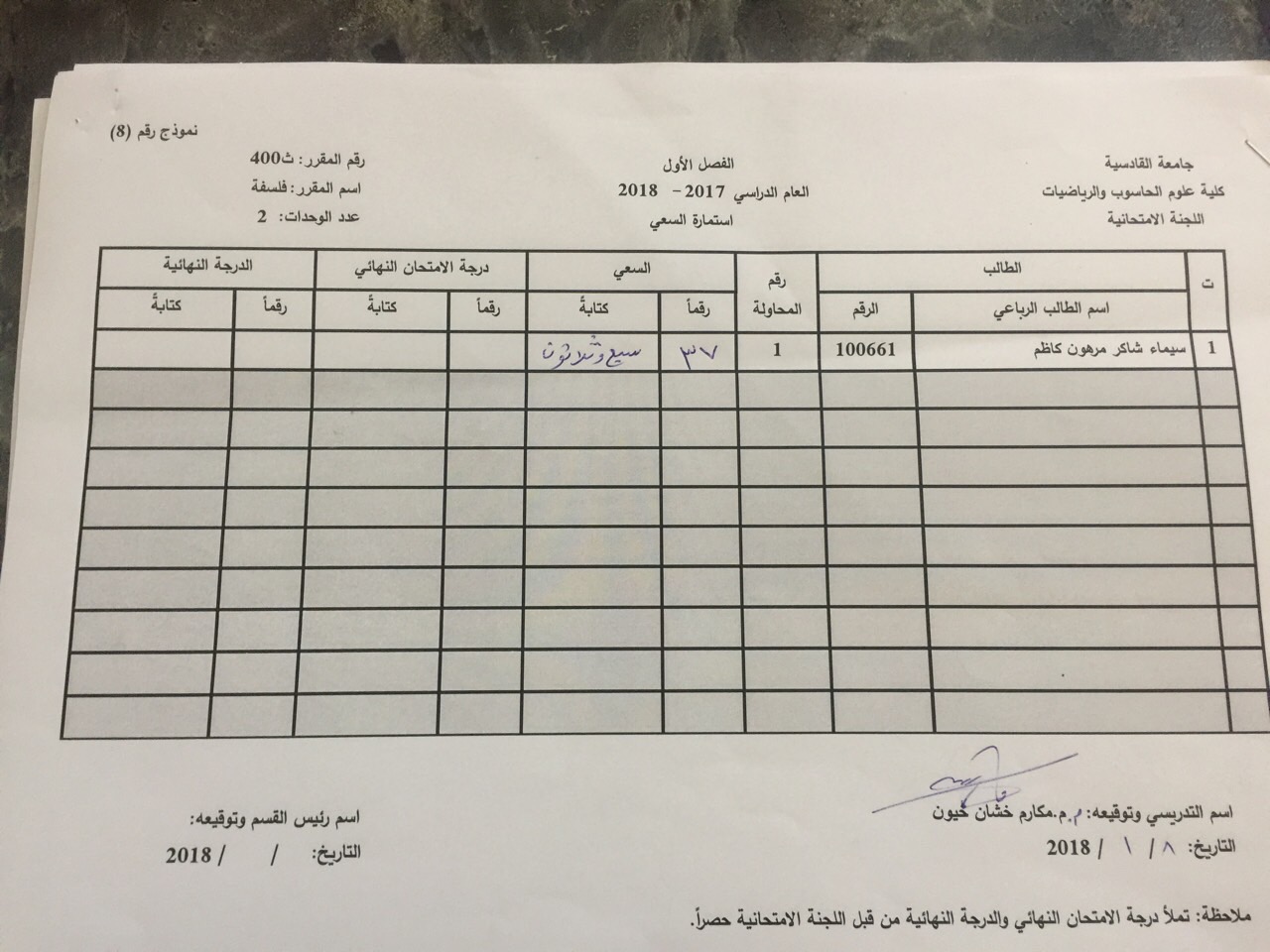 درجات السعي السنوي لمادة الفلسفة