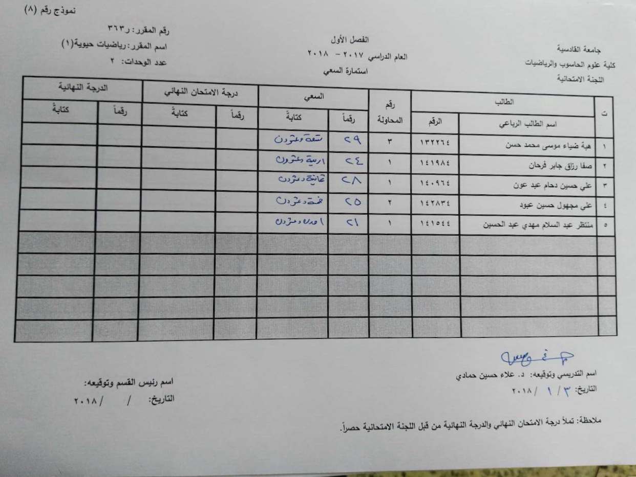درجات السعي السنوي لمبادئ الادارة ,نظرية المباريات,رياضيات حيوية و معادلات تفاضلية جزئية