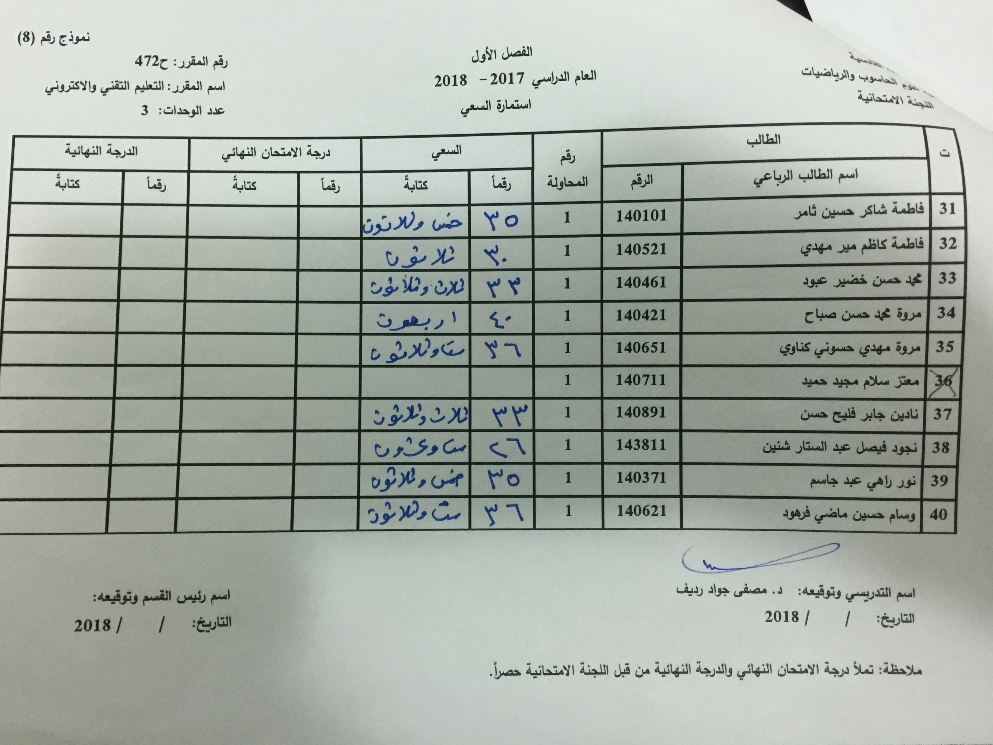 سعي مادة ( رسم بالحاسبة – أنظمة تشغيل – هياكل بيانات – تعليم تقني وإلكتروني – تطبيقات الوسائط المتعددة – ذكاء اصطناعي – معالجة صور – معالجة صور رقمية بحوث عمليات-رياضيات حاسوبية