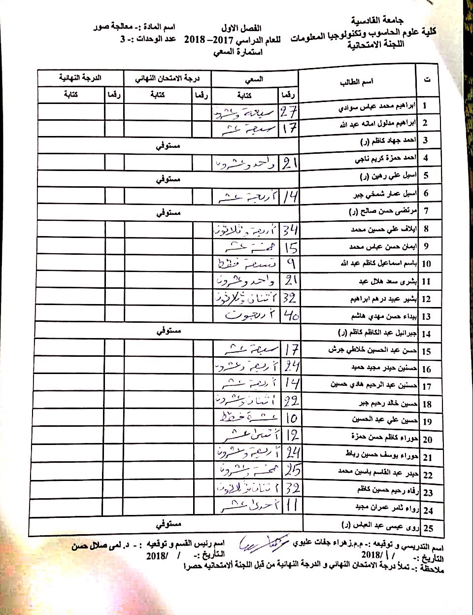 سعي مادة معالجة صور – احتسابية -طرق عددية-مترجمات -ذكاء اصطناعي