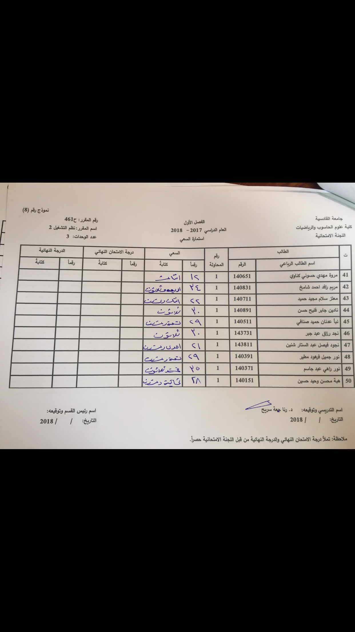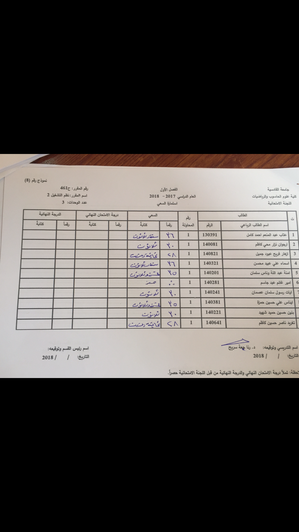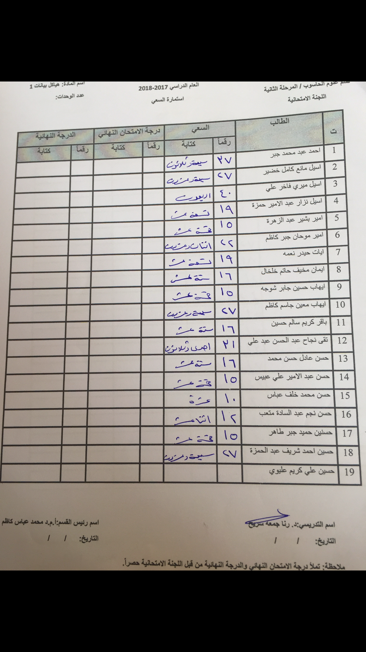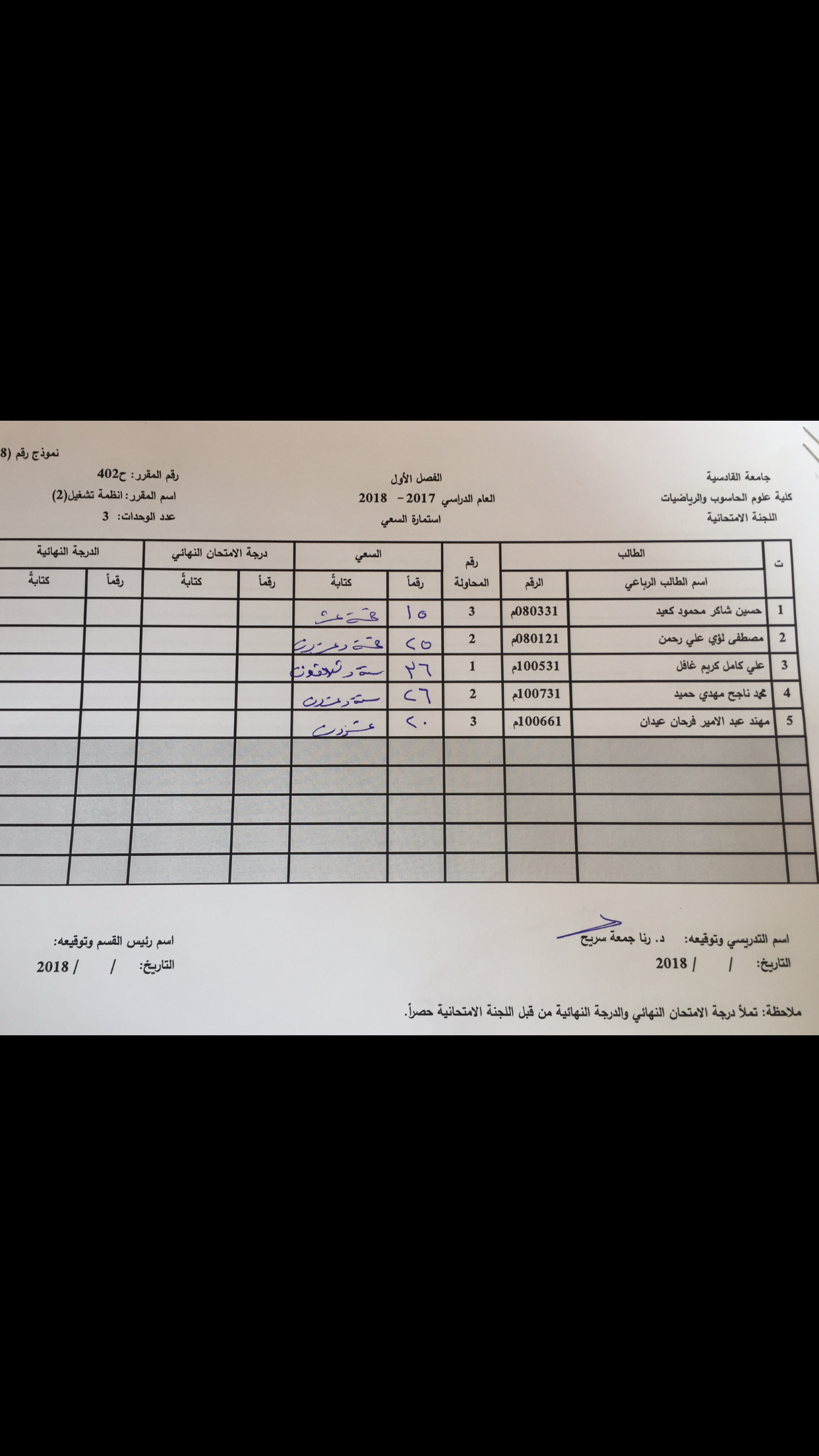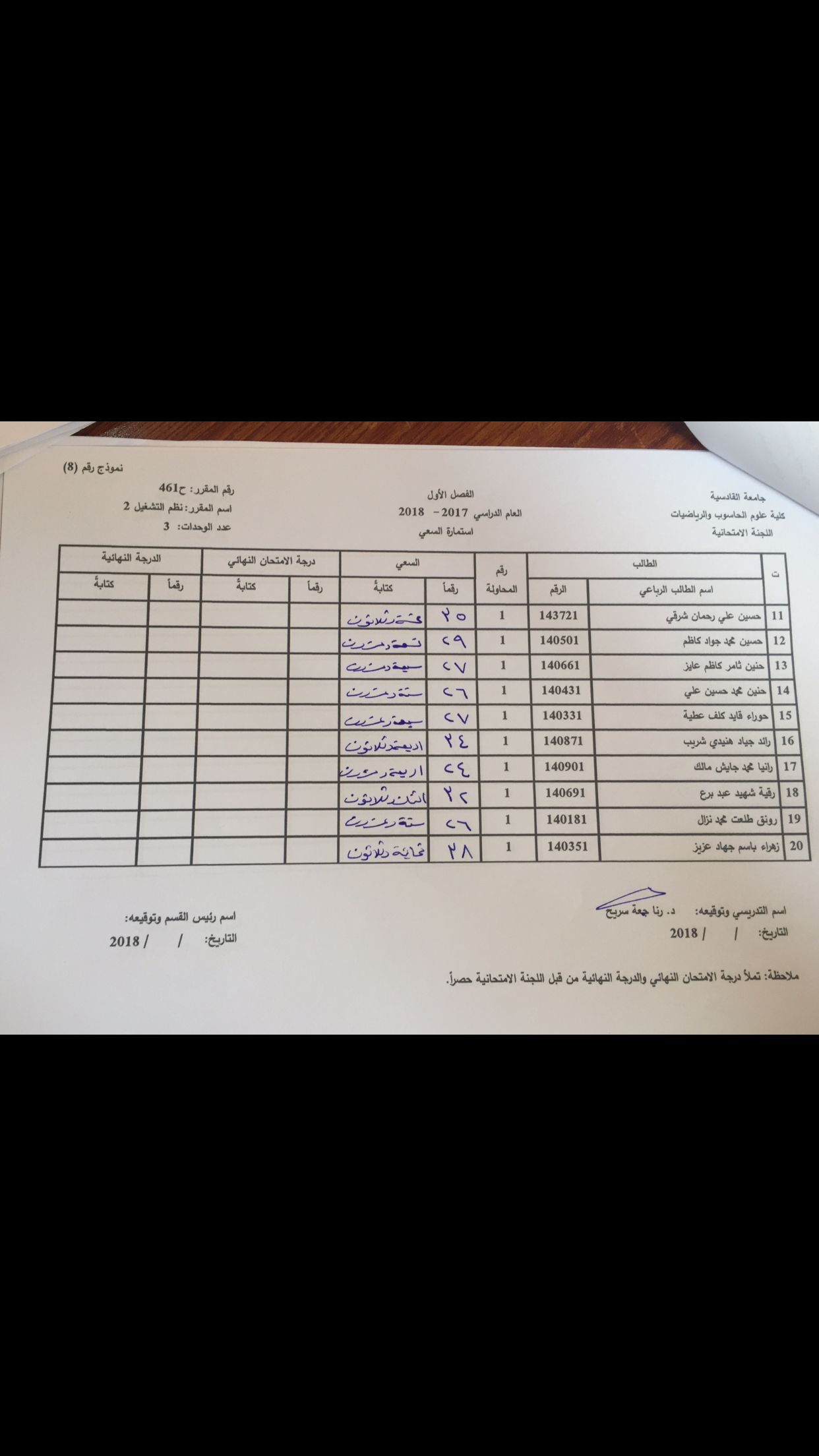 سعي مادتي اللغة الانكليزية ونظم تشغيل /قسم الحاسوب