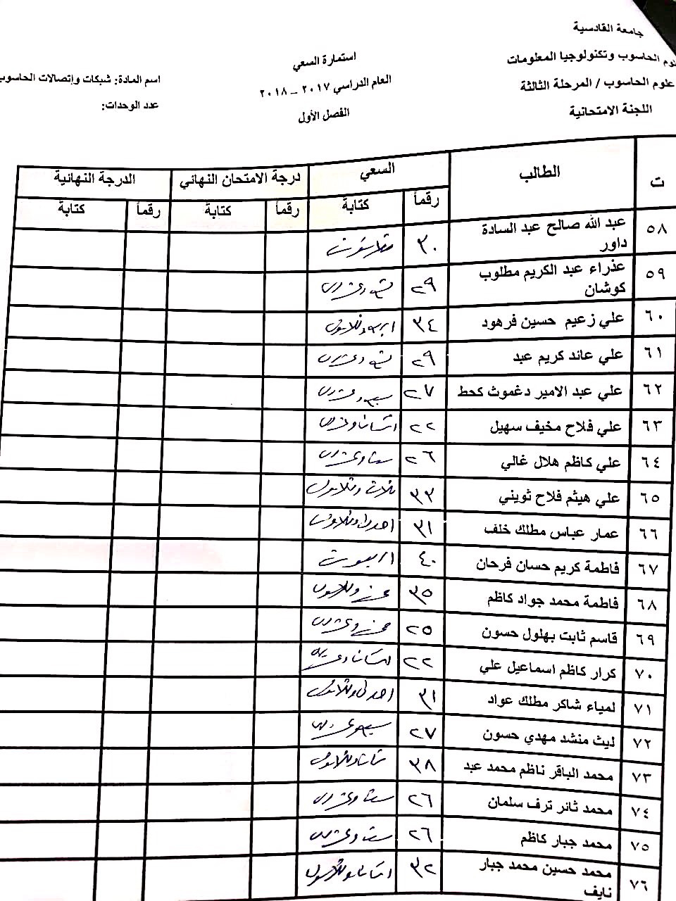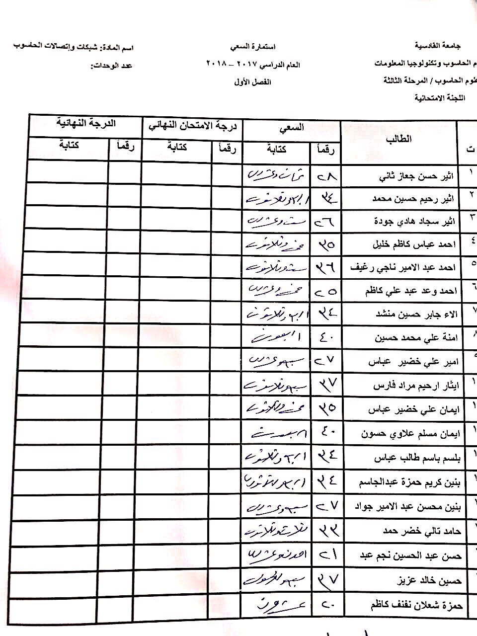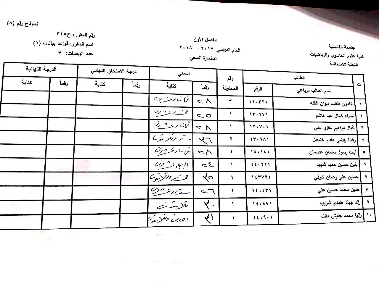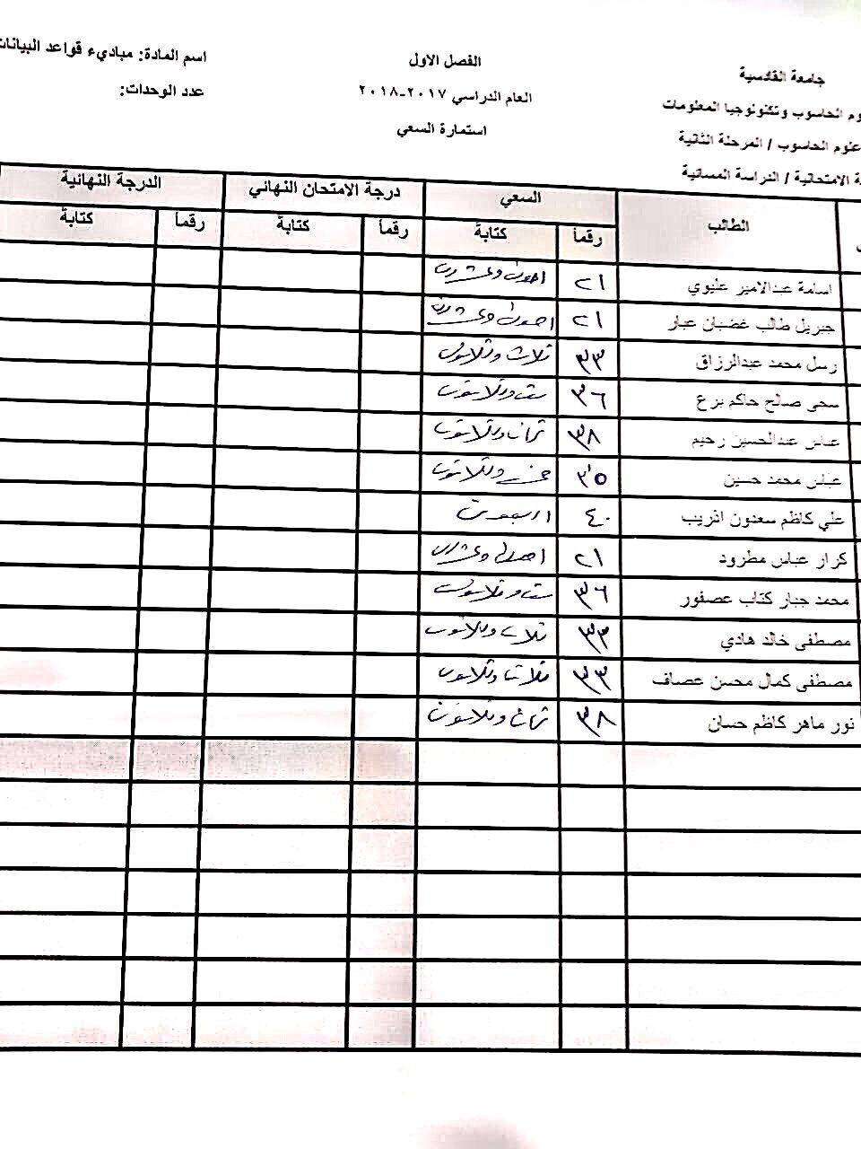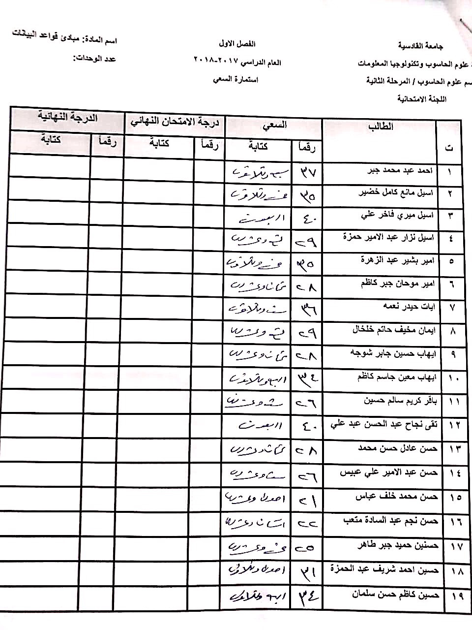 سعي مادة ( قواعد بيانات-برمجة كيانية – اتصالات وشبكات الحاسوب – مبادئ قواعد بيانات – مختبر شبكات الحاسوب)