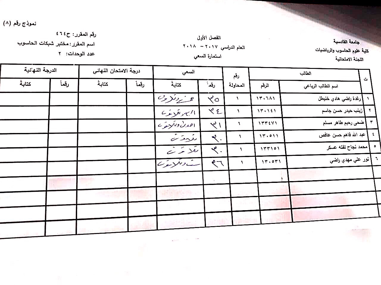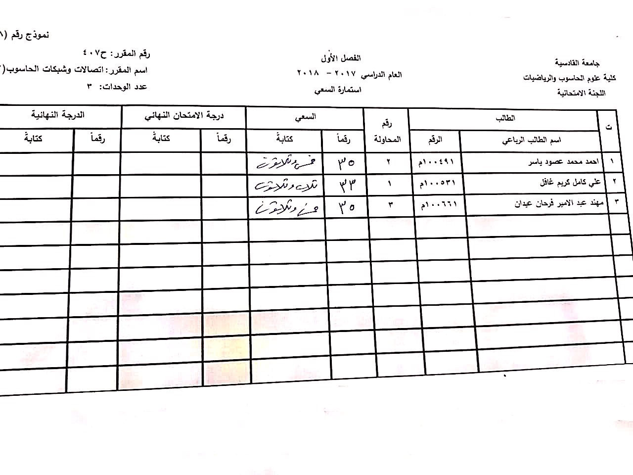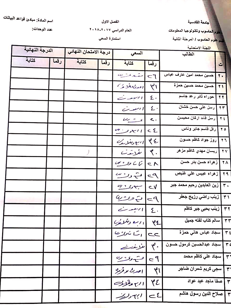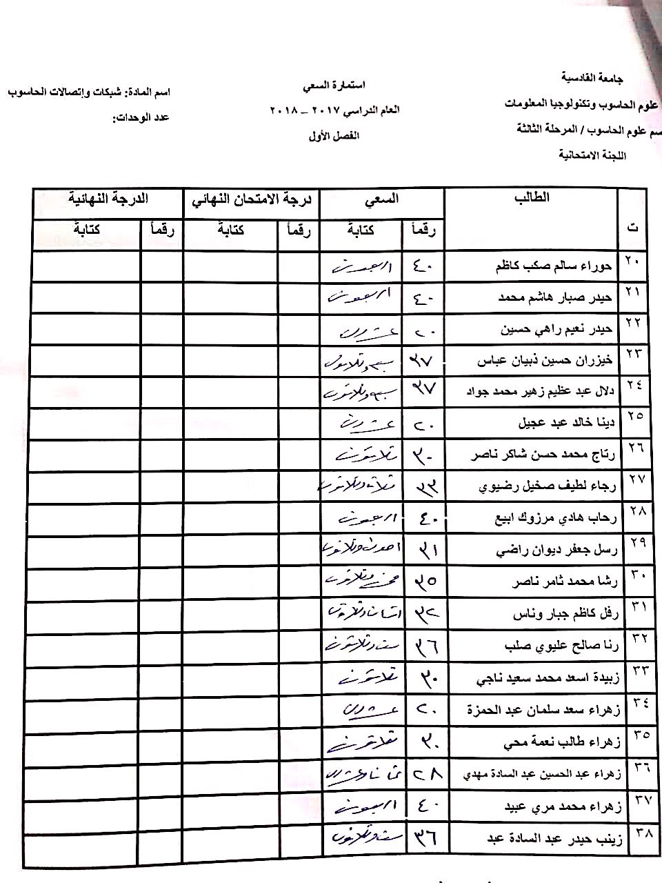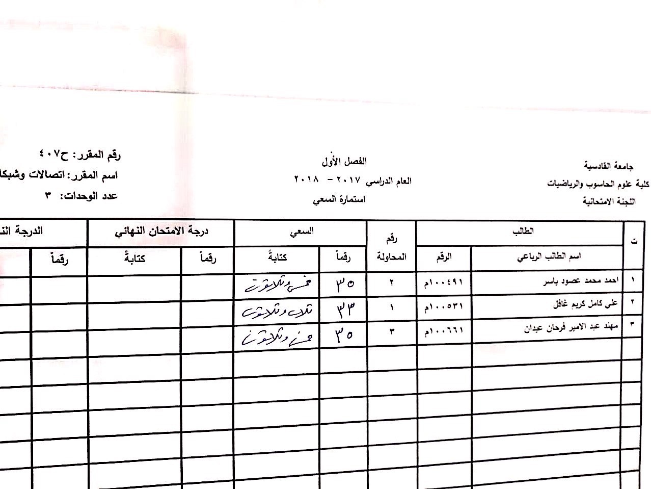 سعي مادة ( قواعد بيانات-برمجة كيانية – اتصالات وشبكات الحاسوب – مبادئ قواعد بيانات – مختبر شبكات الحاسوب)
