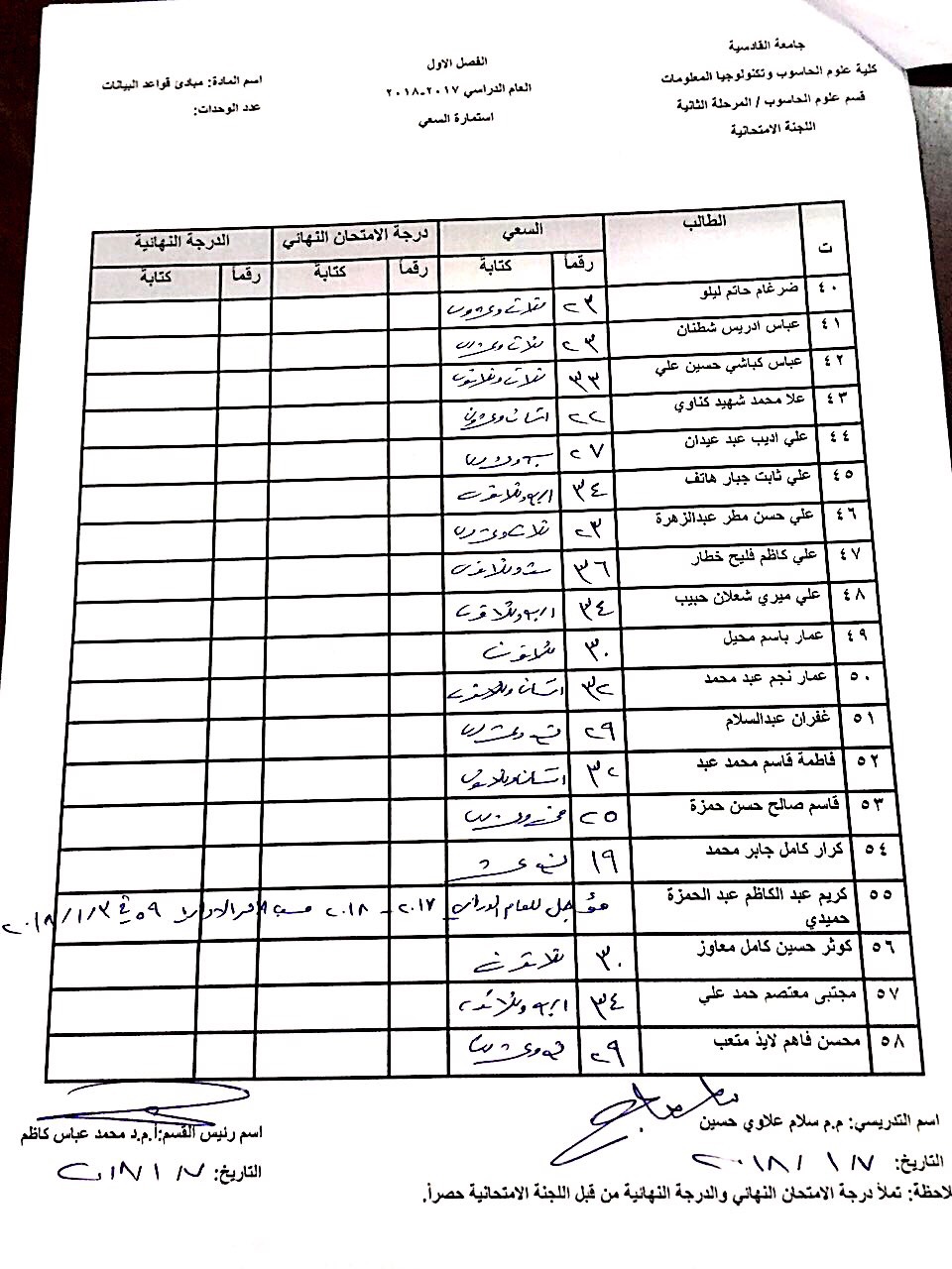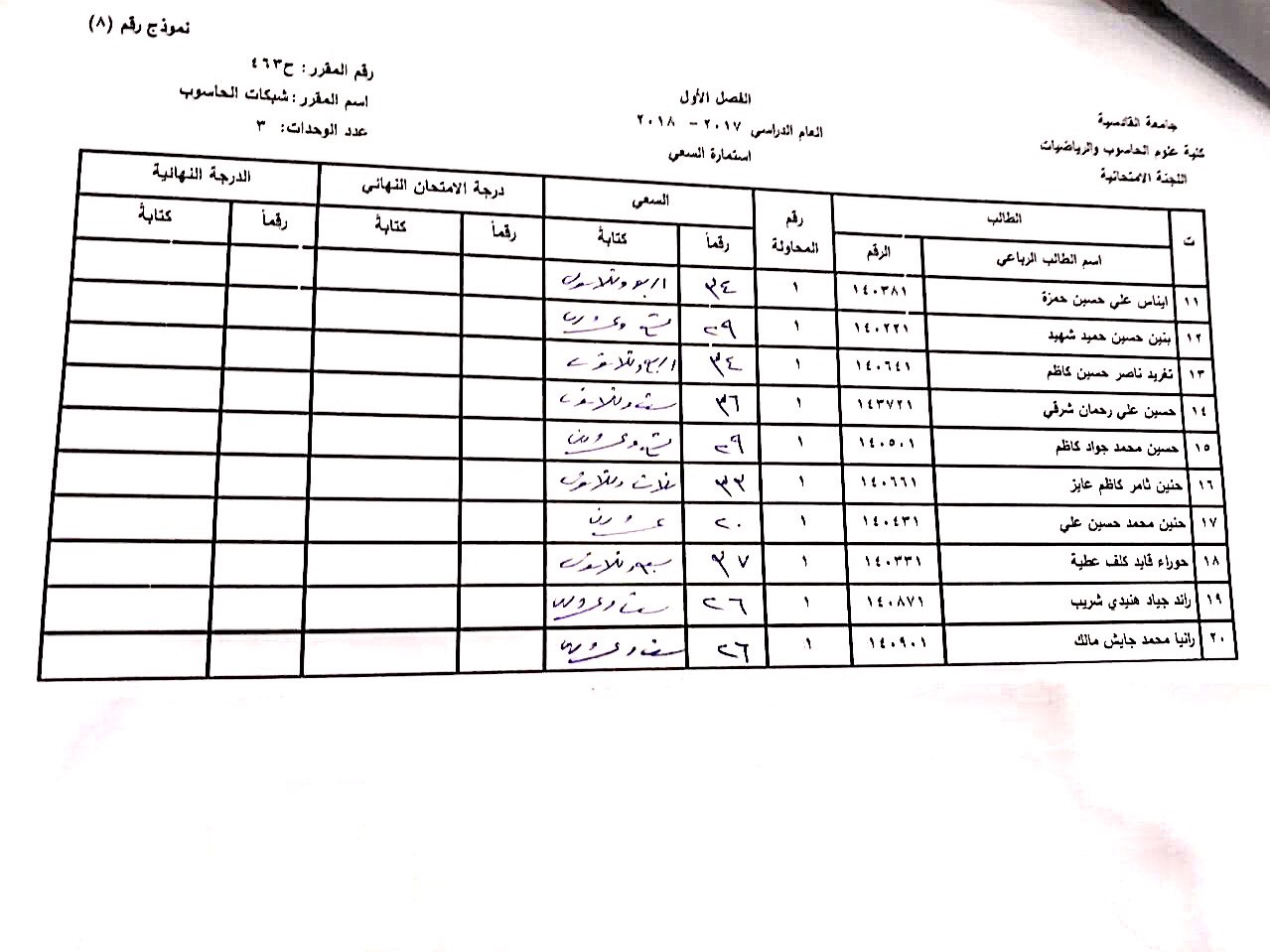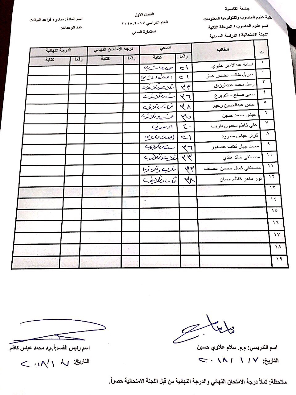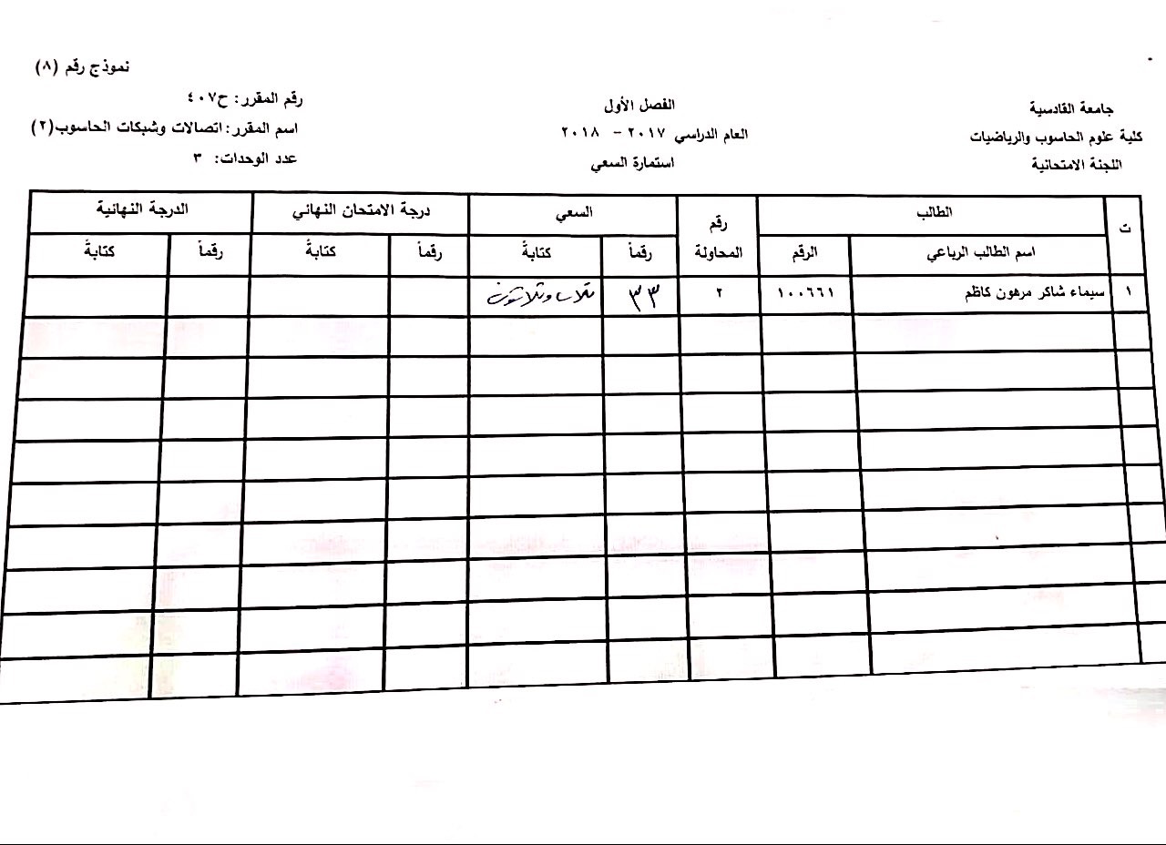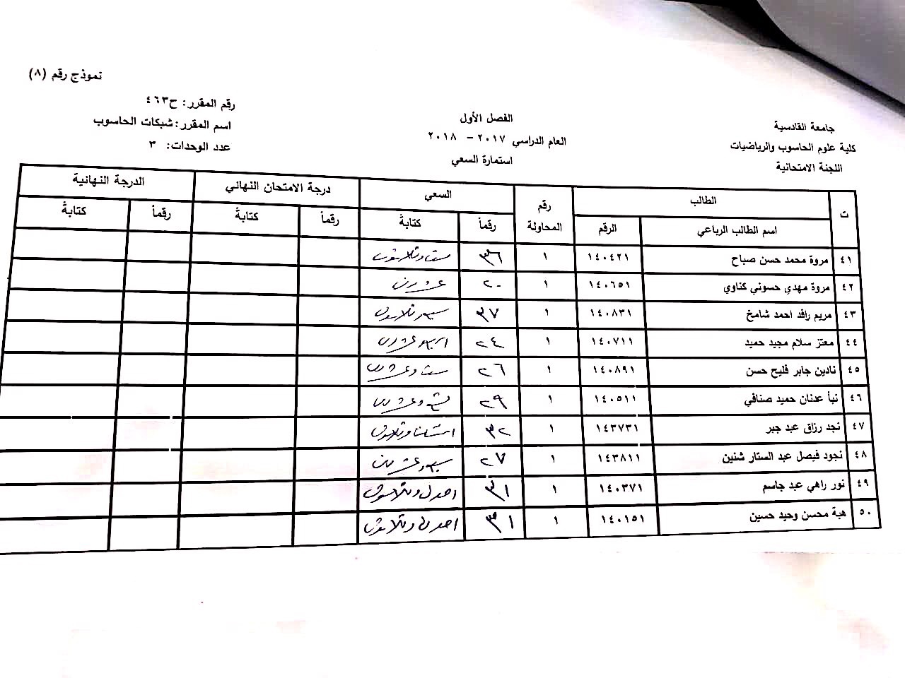سعي مادة ( قواعد بيانات-برمجة كيانية – اتصالات وشبكات الحاسوب – مبادئ قواعد بيانات – مختبر شبكات الحاسوب)