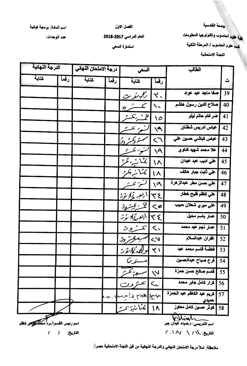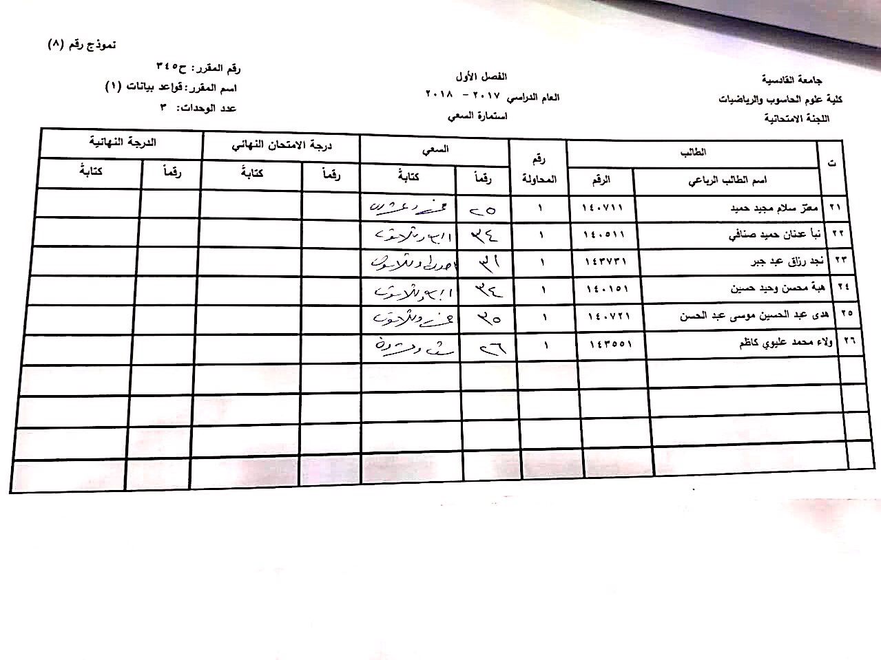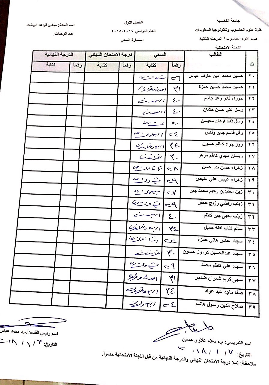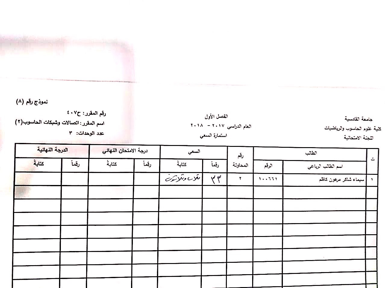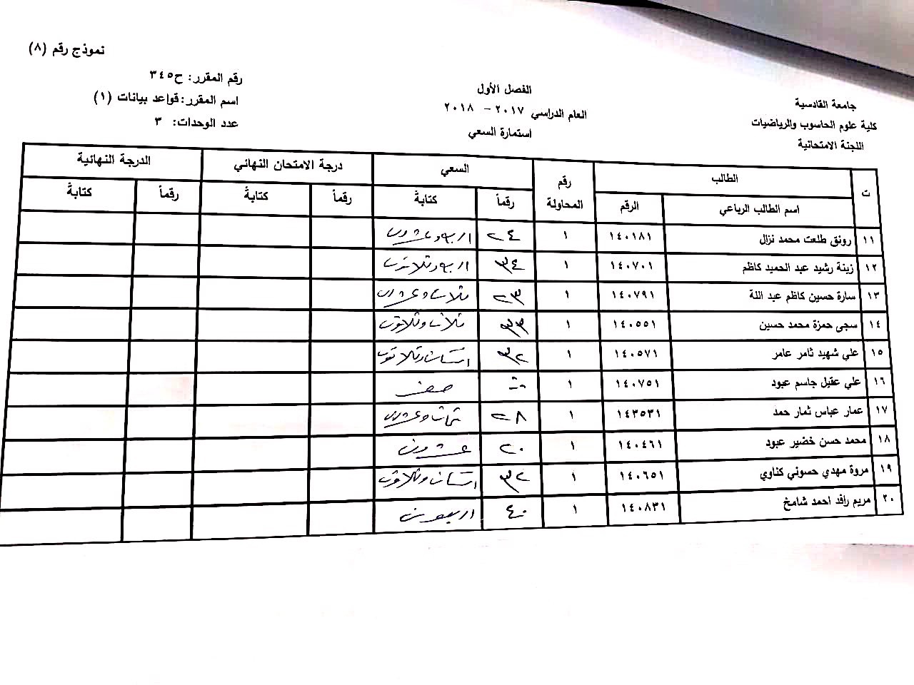 سعي مادة ( قواعد بيانات-برمجة كيانية – اتصالات وشبكات الحاسوب – مبادئ قواعد بيانات – مختبر شبكات الحاسوب)