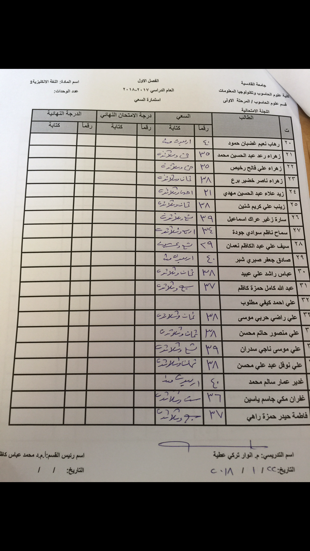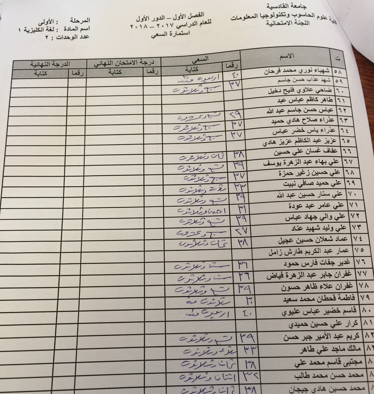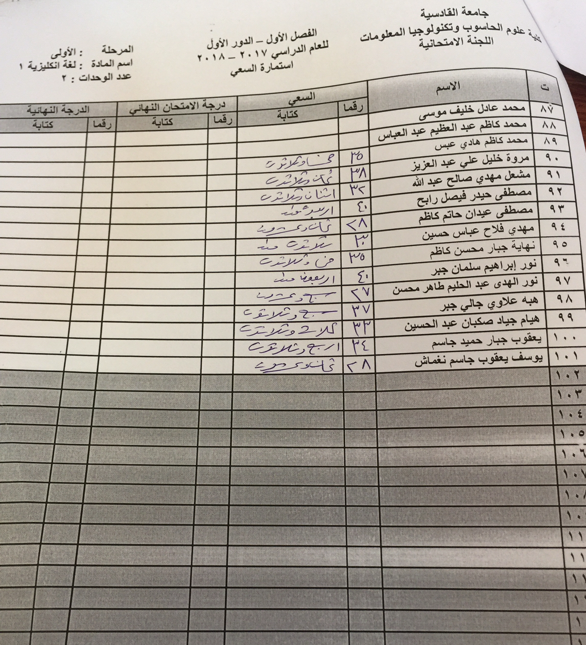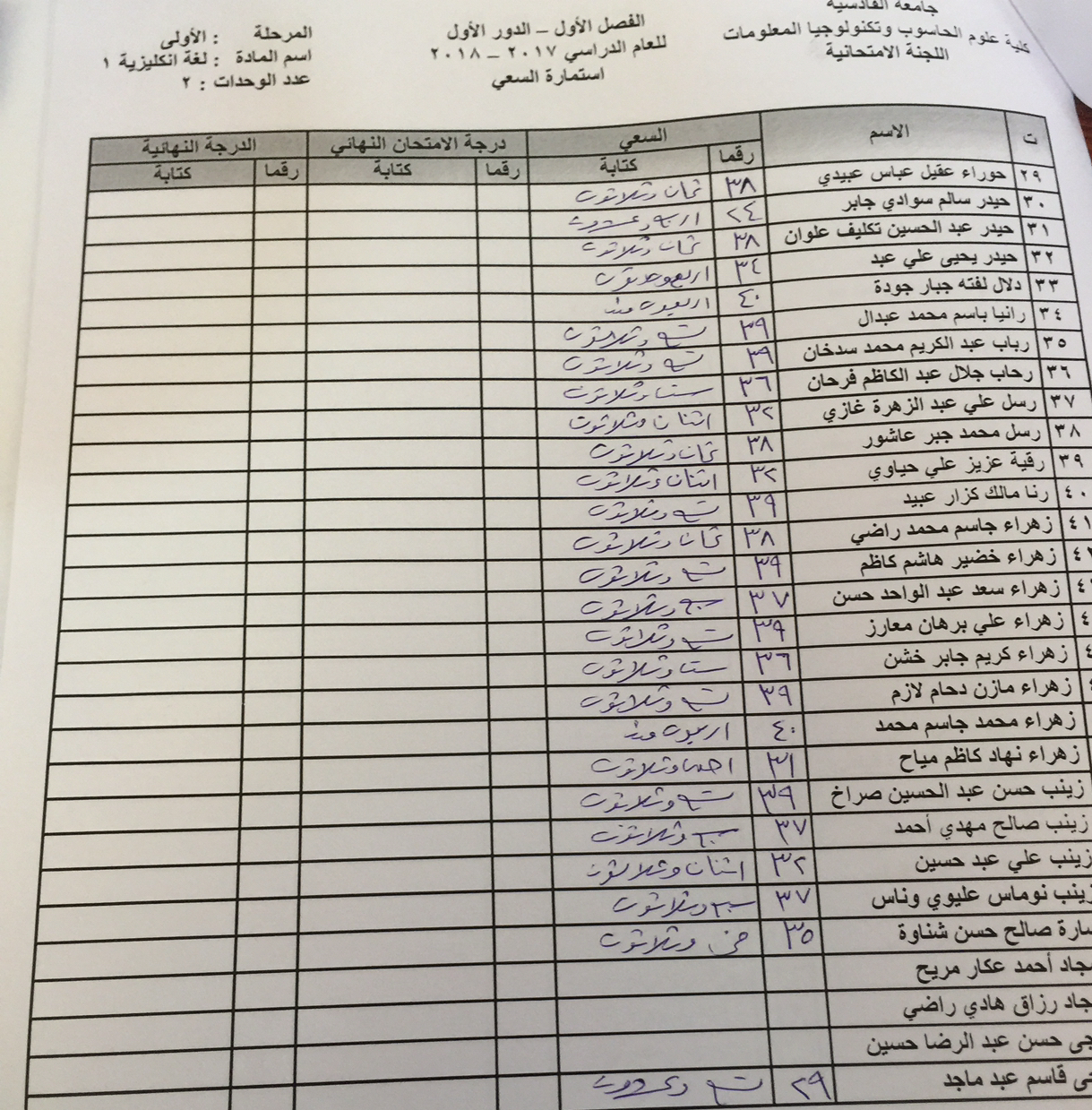 سعي مادة اللغة الانكليزية /المستوى الاول / لقسمي الحاسوب ونظم المعلومات