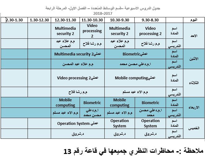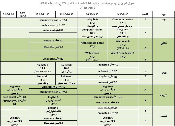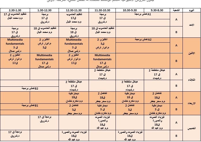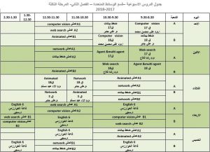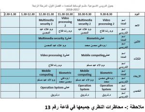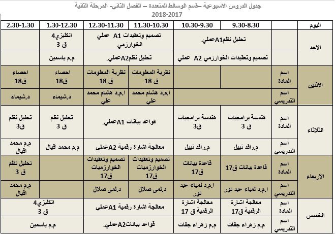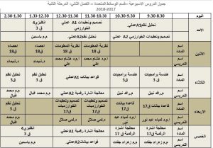 جدول المحاضرات الاسبوعي / الفصل الثاني / للأقسام العلمية كافية