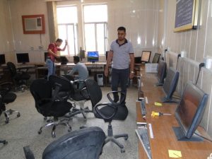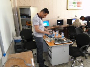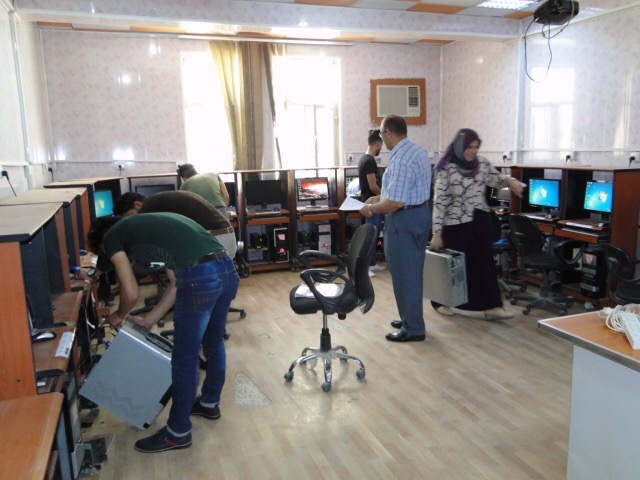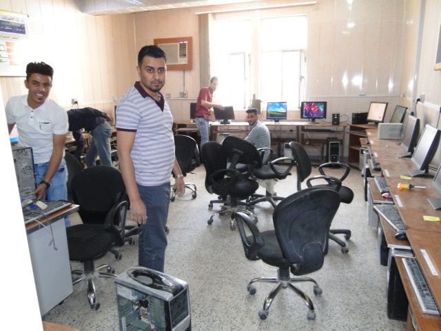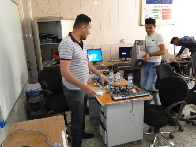 تطبيقاً لشعار العمل الجماعي وبتوجيه من الاستاذ المساعد الدكتور هشام البيرماني عميد كلية علوم الحاسوب وتكنولوجيا المعلومات نفذ قسم الحاسبات في كليتنا حملة عمل تطوعي لتأهيل مختبرات الكلية ضمن اسبوع العمل التطوعي كما قدمت الكوادر الفنية حملة لصيانة الحاسبات من قبل فريق عمل تطوعي مشترك من التدريسيين (السيد رئيس قسم علوم الحاسوب أ.م.د محمد عباس والسيد م. محمد حمزة مقرر القسم) ومجموعة من الطلبة في قسم علوم الحاسوب لصيانة حواسيب المختبرات في الكلية حيث قام الفريق بتنفيذ اعماله صباح يوم الثلاثاء الموافق 2018/4/3 لضمان تفرغ التدريسيين والطلاب والمختبرات من المحاضرات , وان الهدف من هذه الحملة التطوعية هو اعادة الحاسبات العاطلة وتشغيلها والاستفادة منها للأقسام والشعب التي تحتاجها وبذلك تكاد تكون الحملة قد وفرت مبالغ لشراء هذه الحاسبات من الاسواق المحلية” وقد تم خلال الحملة انجاز ما يلي :- 1- صيانة ثلاث مختبرات في الكلية بواقع 35 حاسبة تم ادخالها الى الخدمة نوعdesktop. 2- صيانة وتنصيب برامجيات متعددة لأكثر من 40 حاسبة اخرى . 3- صيانة 18 كرسي مختبر دوار . 4- صيانة وتصليح 15 مجهز قدرةUPS . 5- صيانة وتصليح 38 لوحة مفاتيح وmouse .
