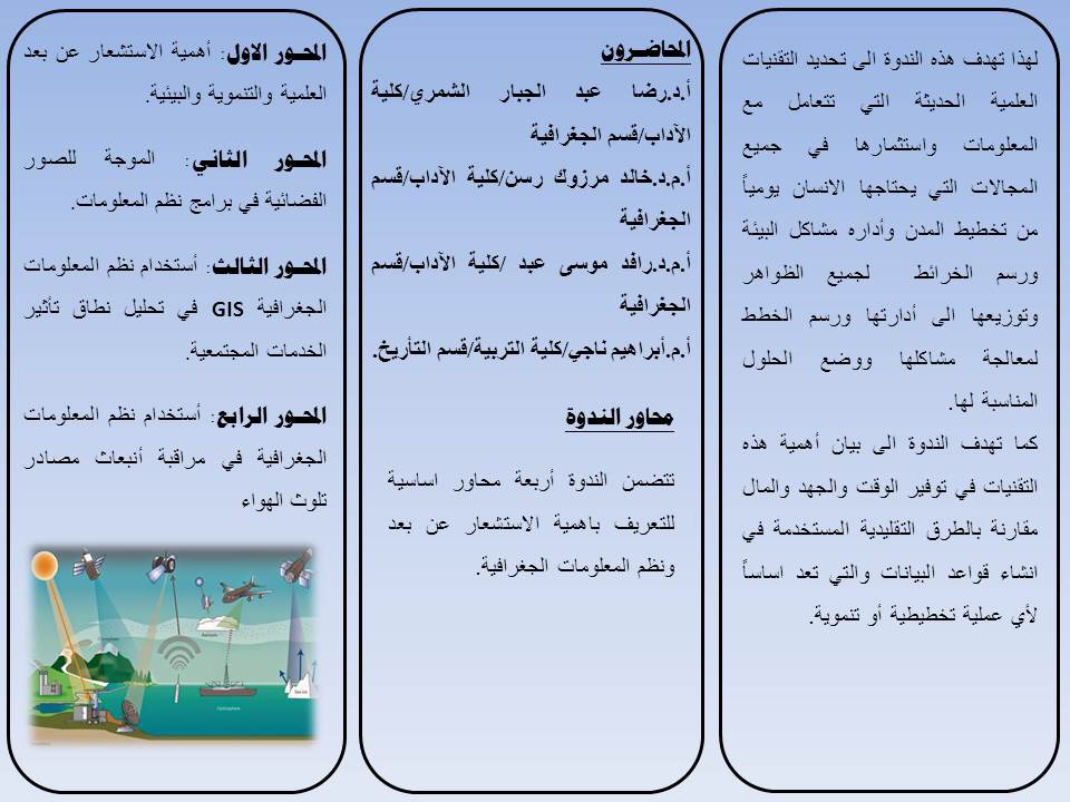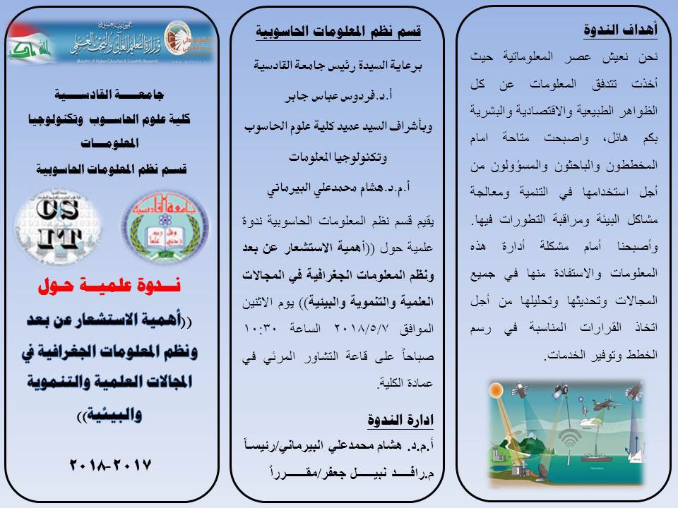 أقامت في قسم نظم المعلومات الحاسوبية ندوة تحت عنوان أهمية الاستشعار عن بعد ونظم المعلومات الجغرافية في المجالات العلمية والتنموية والبيئية