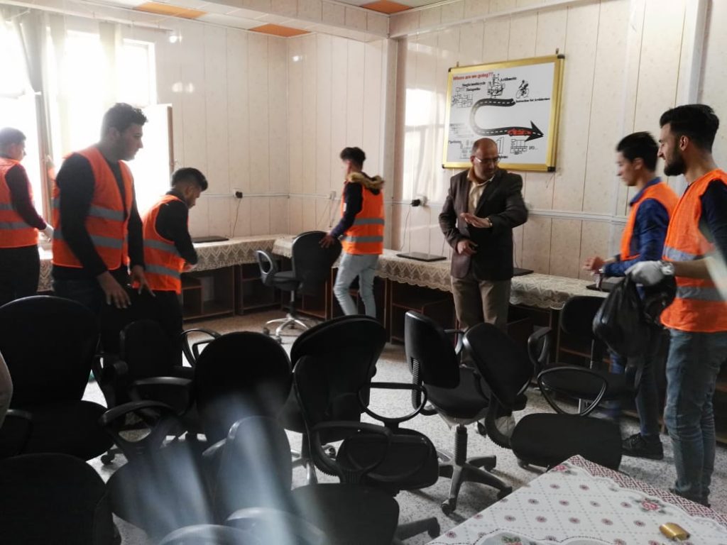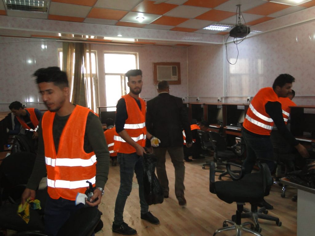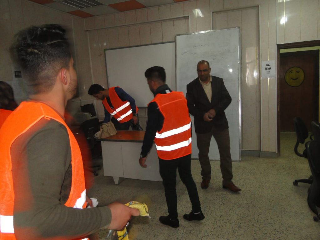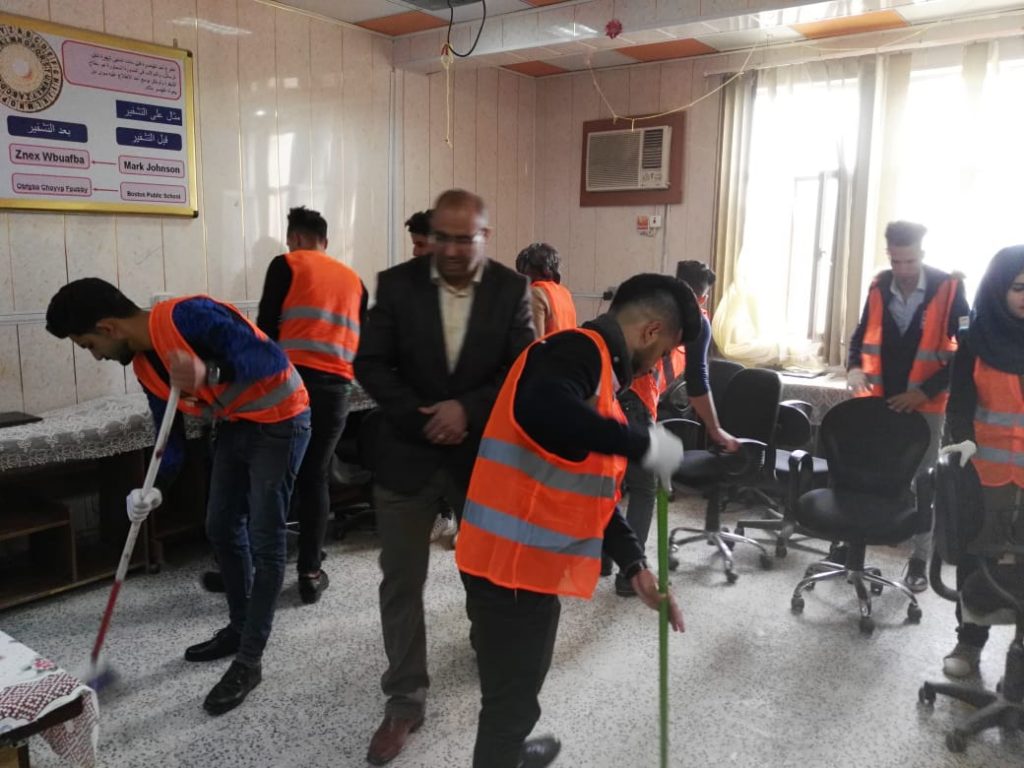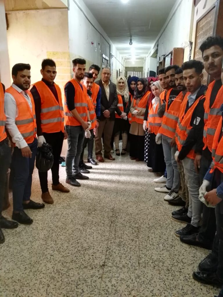 ورئيس القسم الاستاذ المساعد الدكتور محمد كاظم السلمان” حملة تطوعية لتنظيف ممرات ومداخل ومخارج القسم بالإضافة إلى تنظيف الجدران وكل جوانب القسم الاخرى والحملة تأتي تفعيلاً لدور النشاط الطلابي وروح العمل الجماعي واسهاماً في اظهار الكلية بمظهر حضاري جميل يتناسب مع المستوى العلمي الرفيع الذي تتمتع به الكلية وتعبيراً عن الشعور بالمسؤولية.