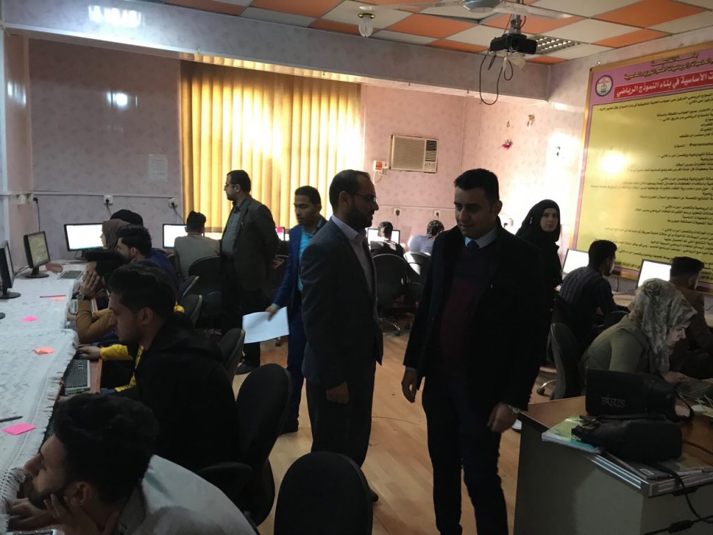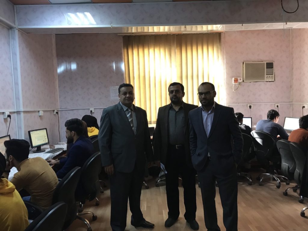 تم اليوم الموافق الخميس31/1/2019 وعلى بركة الله اجراء امتحان اللغة الانكليزية للدراسات الاولية لجميع اقسام كلية علوم الحاسوب وتكنولوجيا المعلومات حيث اعتمدت على الاختبارات الالكترونية في اداء الامتحان و اجري الامتحان في مختبرات قسم الحاسوب واشرف على الامتحان السيد عميد الكلية أ.م.د منتصرجابر جواد و السيد معاون العميد للشؤون العلمية م.د ضياء عيدان جبر والسيد رئيس قسم الحاسوب وكالة م. محمد حمزة والسيد ا .م د علي محسن الجبوري وقد تم اداء الامتحان على اتم وجه والحمد لله بدون اي مشاكل او عرقلات من اي نوع وتوفرت كافة الخدمات المستلزمة للطلبة