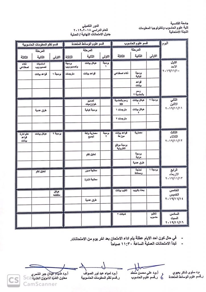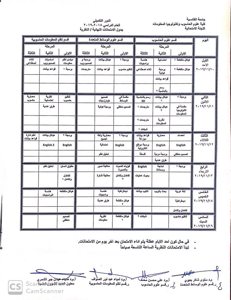 جدول الدور التكميلي 2018/2019