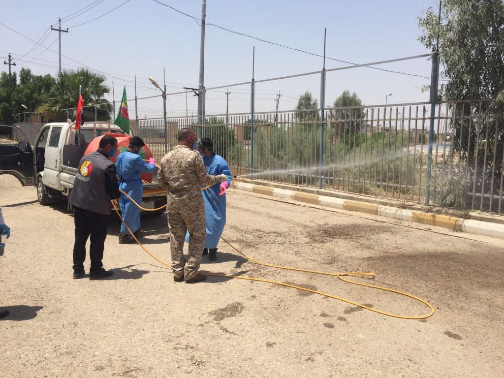 بتاريخ اليوم 11/6/2020قامت كلية علوم الحاسوب وتكنلوجيا المعلومات في جامعة القادسية و بالتعاون مع العتبه الحسينيه باشراف الشيخ رمضان السعيدي حملة تعقيم وتعفير وقائية ضد فايروس كرونا وبمشاركة السيد المعاون الإداري أ.م رافد نبيل جعفر والسيد المعاون العلمي أ.م.د ضياء عيدان جبر المحترميين حيث تم تعقيم بناية الاقسام العلمية والقاعات الدراسية وممرات وعماد الكلية من الداخل والخارج وساحات الكلية ,وذلك لمنع انتشار فايروس كورونا المستجد والحد منه.