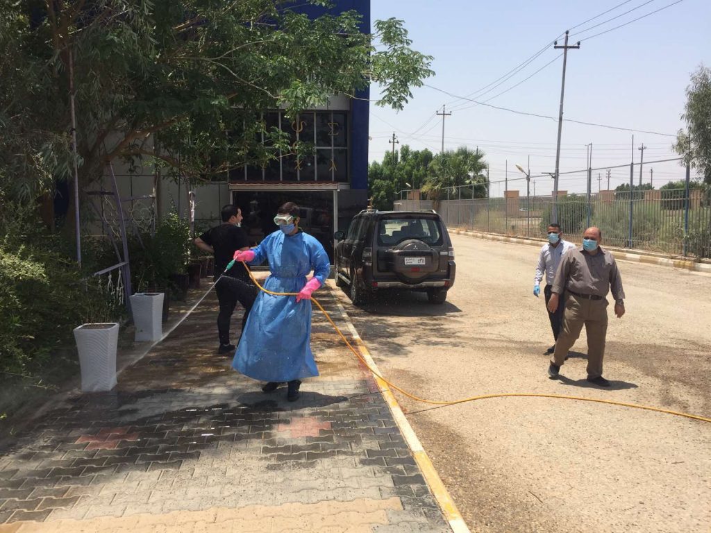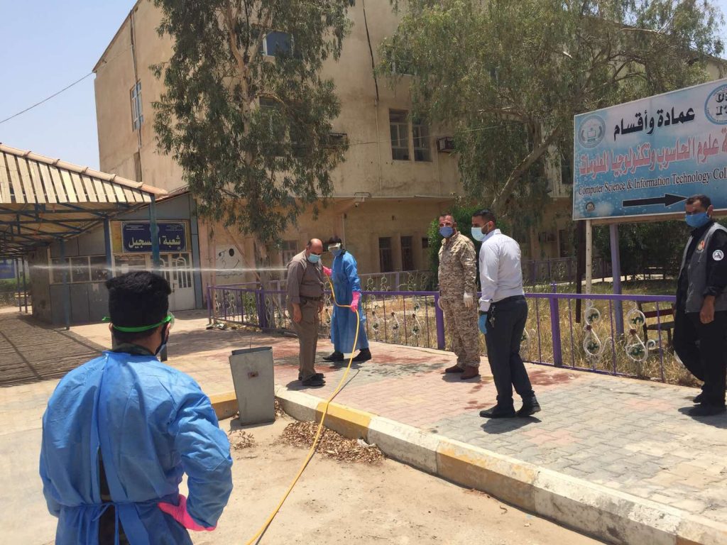 كلية علوم الحاسوب وتكنلوجيا المعلومات بجامعة القادسية تقيم حملة تعقيم