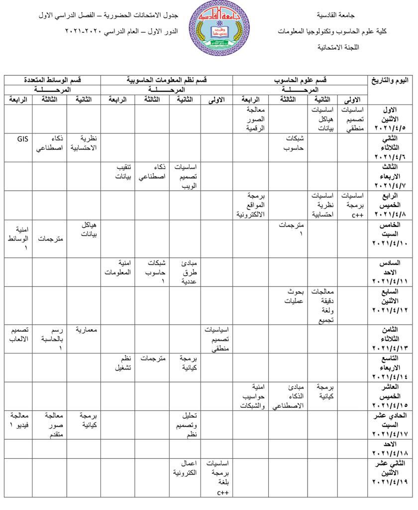 سيكون وقت بداية الامتحانات الحضورية هي العاشرة صباحا يرجى من كافة طلبتنا الاعزاء الالتزام والحضور قبل وقت الامتحان بربع ساعه كاقل تقدير تتمنى لكم عمادة كلية علوم الحاسوب وتكنولوجيا المعلومات وكافة كوادرها التوفيق والنجاح في امتحاناتكم النهائية للفصل الدراسي الاول