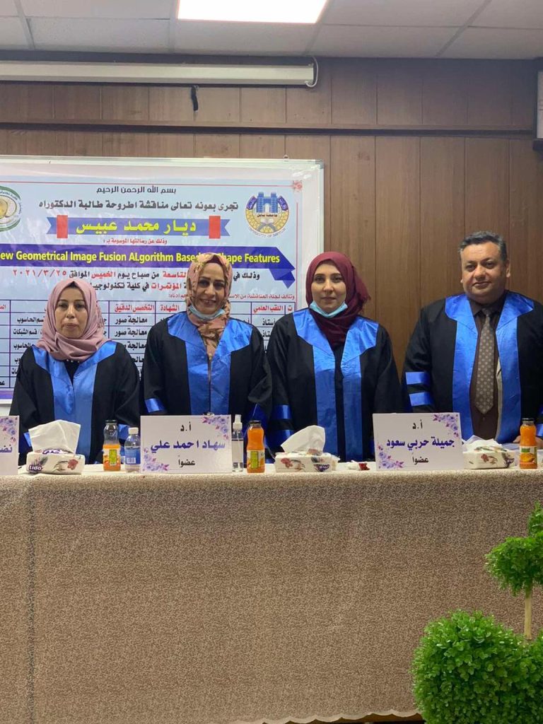 شارك التدريسي ا.م.د ضياء عيدان جبر الشمري عميد كلية علوم الحاسوب وتكنولوجيا المعلومات عضوا في مناقشة اطروحة دكتوراه في كلية تكنولوجيا المعلومات في جامعة بابل للطالبة ديار محمد وكانت اطروحتها للدكتوراه في تخصص معالجة الصور الرقمية في اطار التقنيات الذكية والتي تدعم بناء منظومة حديث لتمييز البصمات الشخصية والتي من الممكن ان تطور المنظومات الامنية الالكترونية في العراق وقد شارك في تقييم ومناقشة الاطروحة مجموعة من الاساتذة المختصين من مختلف الجامعات العراقية