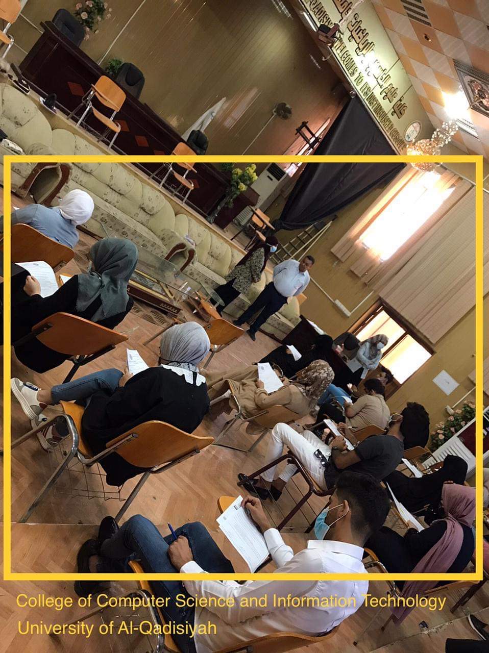 في اليوم الثاني على التوالي من موعد إنطلاق الإمتحانات الحضورية النهائية للفصل الدراسي الثاني للعام ٢٠٢٠-٢٠٢١ أدى الطلبة في كلية علوم الحاسوب وتكنولوجيا المعلومات الإمتحانات وبنجاح عال حيث إتسم اليوم الإمتحاني بتنظيم عالي وأجواء إمتحانية هادئة ومريحة.. وأبدى الطلبة إرتياحهم للخدمات المقدمة من قبل الكلية مثل منظومة التبريد المحدثة وحصولهم على أجواء باردة خلال الإمتحان في ظل موجة الحرارة العالية الحالية بالإضافة الى توفير مياه الشرب والإهتمام بنظافة القاعات الامتحانية وأروقة الكلية وترتيب مقاعدهم الإمتحانية مع مراعاة مبدأ التباعد.. حفاظا وحرصا على صحة وسلامة الطلبة الأعزاء..