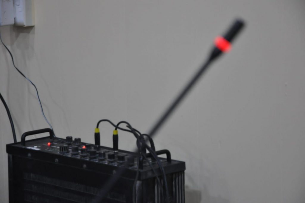 بإشراف ومتابعة مباشرة من قبل السيد عميد كلية علوم الحاسوب وتكنولوجيا المعلومات الأستاذ المساعد الدكتور ضياء الشمري تمت إضافة منظومة مكبرات الصوت في قاعة الدكتور محمد عباس الجبوري (المخصصة لاستضافة مناقشات الدراسات العليا) حيث تم تنصيب المنظومة بالكامل وتزويدها بمرسلات ومستقبلات لاسلكية متطورة و تم فحصها وتهيأتها لمناقشة الدراسات العليا ليوم الأربعاء ١٠/١١/٢٠٢١.