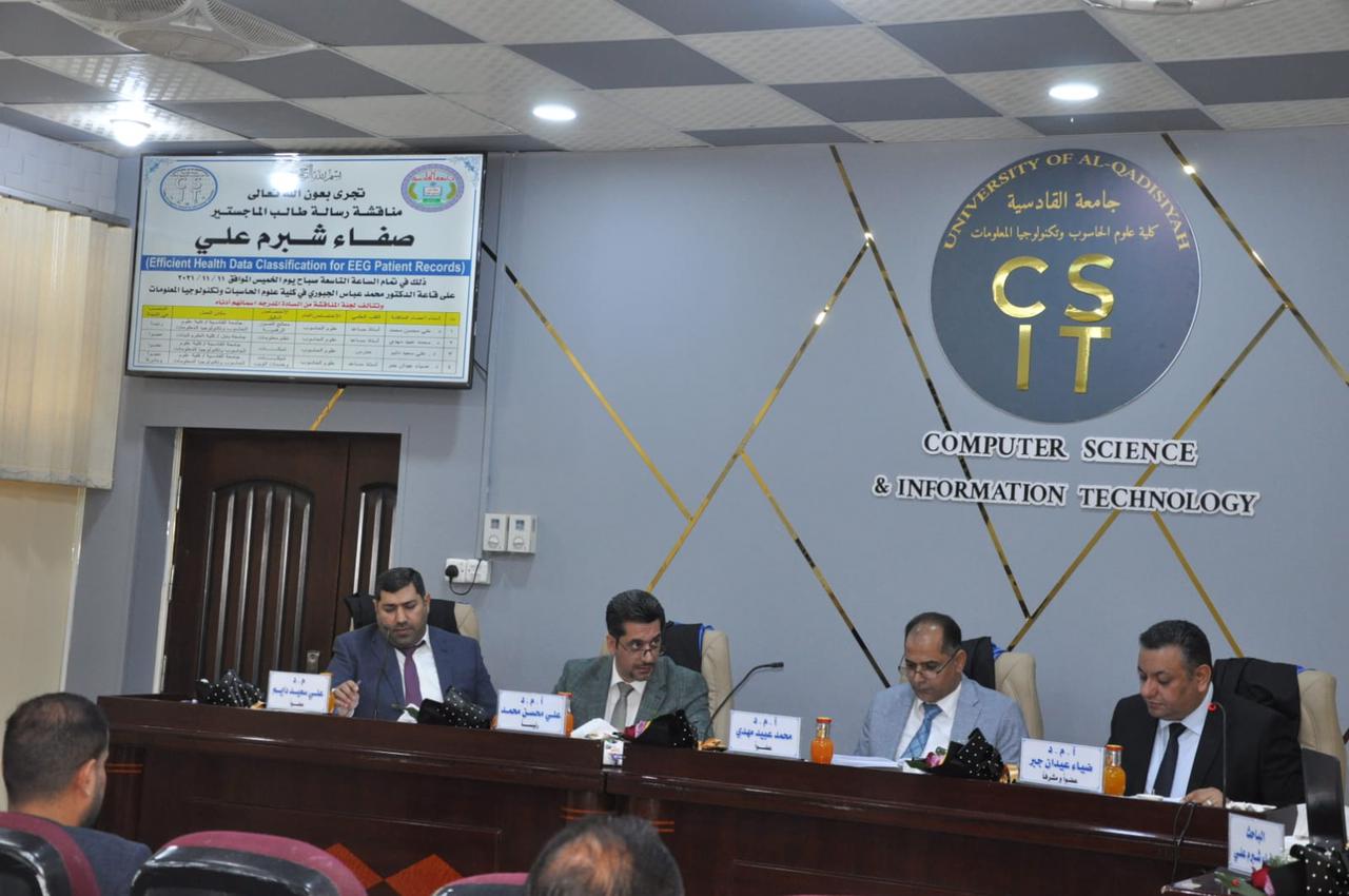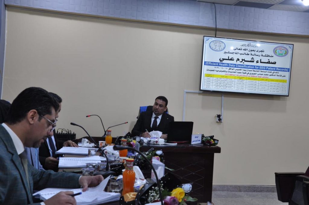 أجريت اليوم الخميس المصادف ١١/١١/٢٠٢١ مناقشة علنية لرسالة ماجستير بعنوان (تشخيص النبضة الدماغية باستخدام الأنظمة الإلكترونية الكفوءة) التي قدمها الطالب صفاء شبرم (قسم علوم الحاسوب)، والتي كانت تحت إشراف الأستاذ المساعد الدكتور ضياء الشمري، حيث قدمت الدراسة أنظمة ذكية لتشخيص حالات الصرع من خلال قراءة النبضه الدماغية.