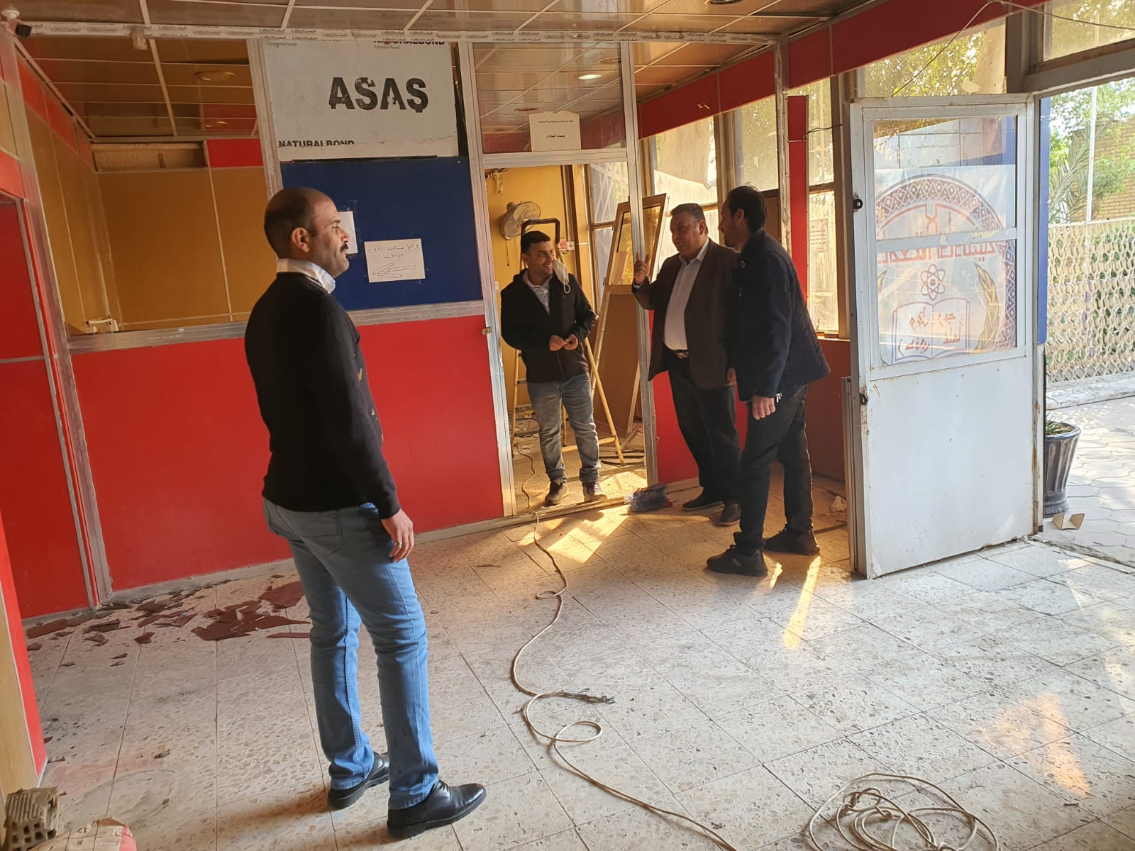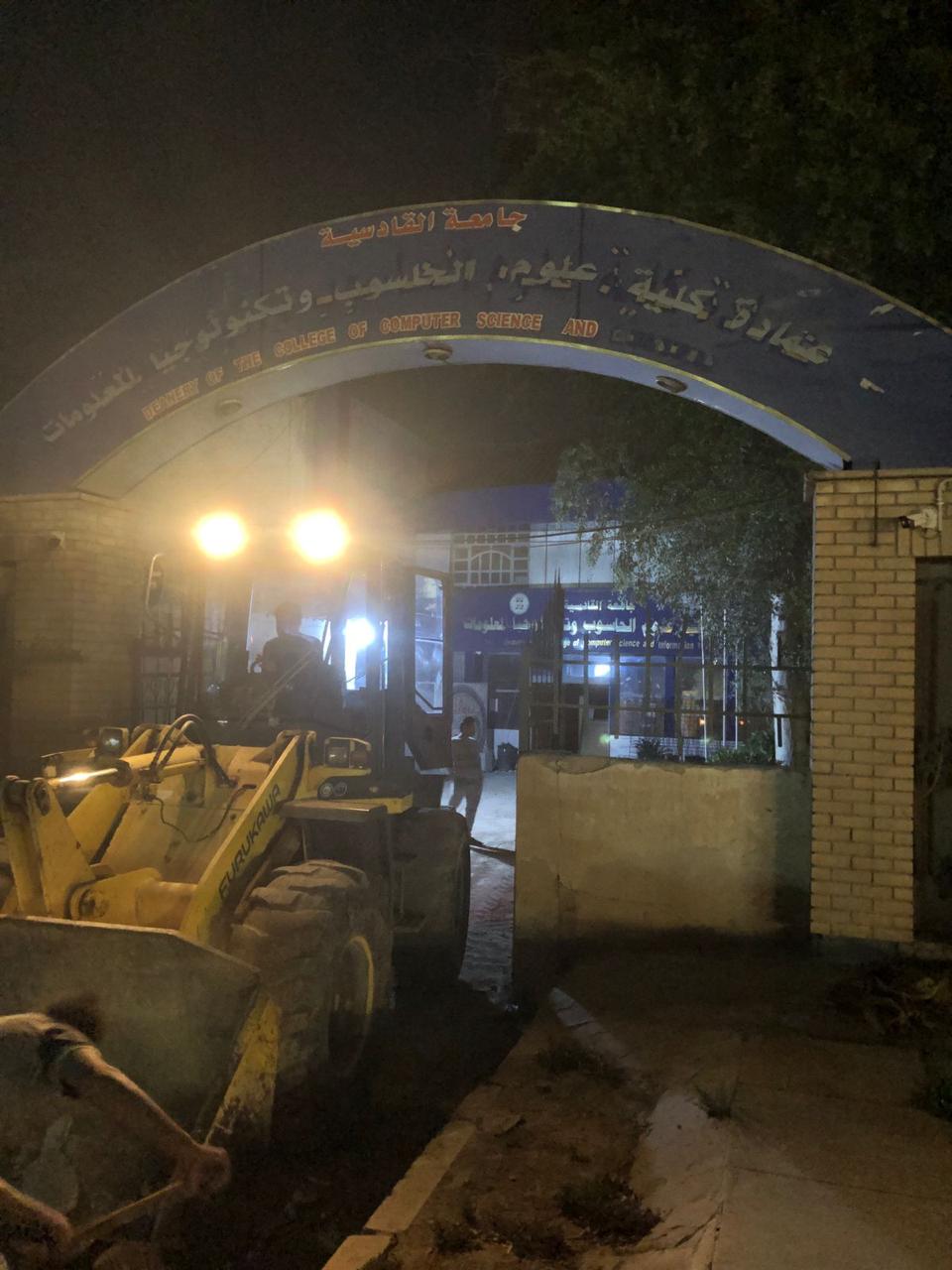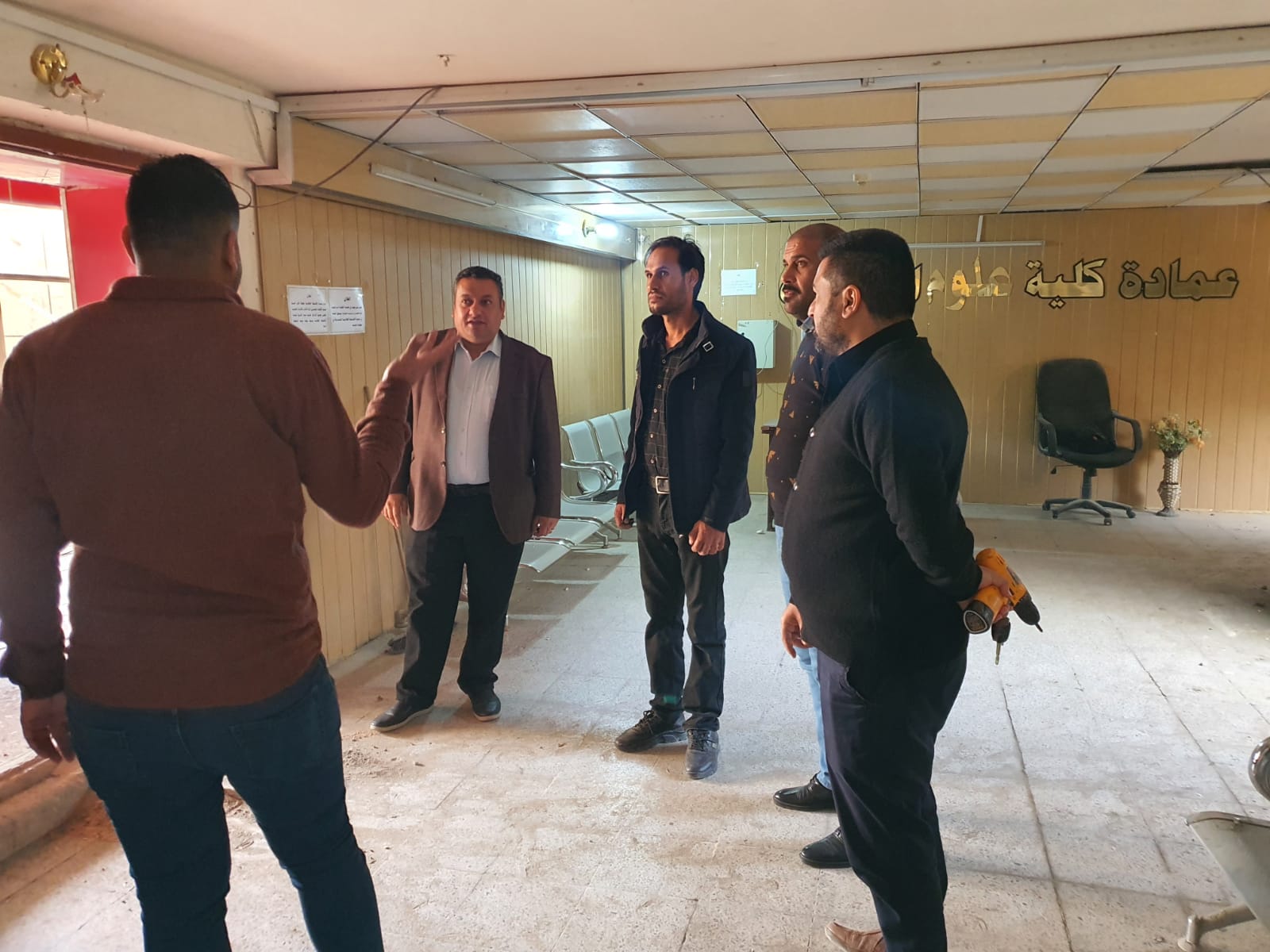 كما تم إكمال أعمال الصب الكونكريتي لمدخل بناية العمادة بعد توسعته ورفع حواجز الألمنيوم الموضوعة، وسيكون مدخل بناية العمادة واسعا وبمساحة كافية لحركة المشاة ومراجعي الكلية بالإضافة الى رواد قاعة الخوارزمي والتي تمثل القاعة الأكبر في الكلية.