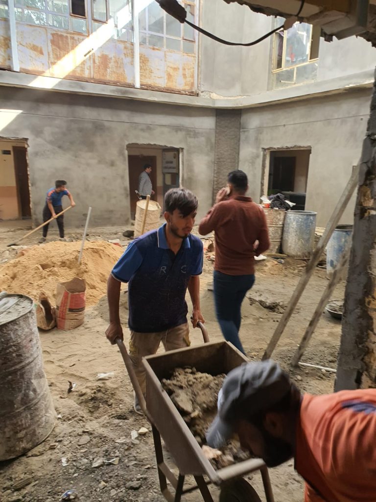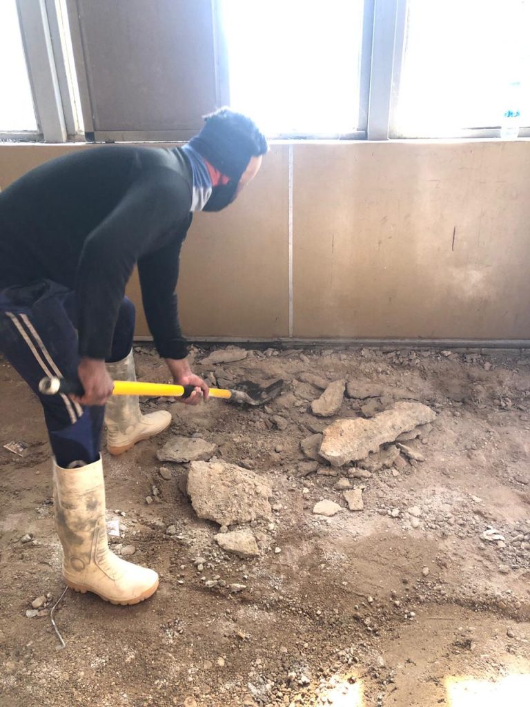 تواصلت أعمال تأهيل سنتر العمادة في كلية علوم الحاسوب وتكنولوجيا المعلومات خلال يومي الجمعة والسبت ولساعات متأخرة من الليل بعد تشديد العمادة على إنجاز الأعمال خلال أقرب وقت ممكن والإسراع بتهيأة هذه المرافق الخدمية لطلبتنا الأعزاء حيث إستمرت عمليات ترتيب الأرضية وتنظيفها برفع الأنقاض وتغطيتها بطبقة من السبيس، ثم اكمال الحدل، واستمرت بعدها أعمال الصب الكونكريتي كطبقه أساسية تسبق الطبقة النهائية.