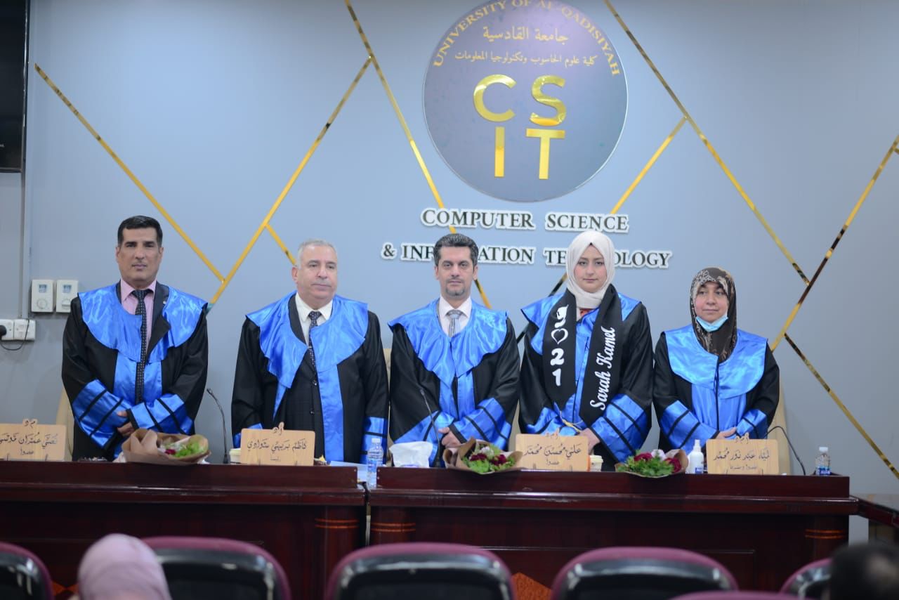 تمت مناقشة رسالة الماجستير للطالبة سارة كامل كطفان في في كلية علوم الحاسوب وتكنولوجيا المعلومات قسم علوم الحاسوب جامعة القادسية بعنوان ” تطبيق مقترح لتصنيف إشارة مخطط كهربائية القلب باستخدام الشبكات العصبية الملتفة أحادية البعد “