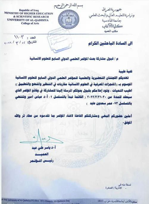شاركت م. مكارم خشان حيون التدريسية في كلية علوم الحاسوب وتكنولوجيا المعلومات/قسم الوسائط المتعددة(المختصة في اللغة العربية) في مؤتمر كلية الآداب الدولي السابع للعلوم الإنسانية عن بحثها الموسوم الحكاية في تفسيري نور الثقلين والميزان.