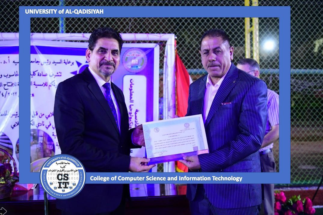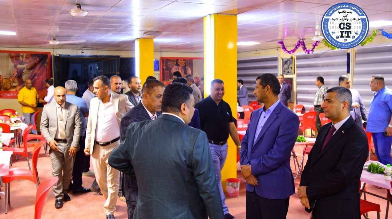 برعاية السيد رئيس جامعة القادسية الأستاذ الدكتور كاظم جبر الجبوري وبإشراف ومتابعة السيد عميد كلية علوم الحاسوب وتكنولوجيا المعلومات الأستاذ المساعد الدكتور ضياء عيدان جبر الشمري أقامت الكلية حفلا بهيجا لافتتاح ناديها الطلابي على يد السيد رئيس الجامعة بمعية مجموعة من السادة عمداء الكليات والسيد نقيب الأكاديميين ونخبة من أساتذة الجامعات والعديد من مدراء الأقسام الإدارية والعلمية في جامعة القادسية، كما أقامت الكلية خلال أمسية رمضانية ندوةً ثقافية بمشاركة نخبة من أساتذة اللغة العربية في كلية الآداب العريقة، و تضمن الإفتتاح وجبة إفطار في النادي الطلابي، حيث استمتع الحاضرون بالجلسات الجميلة والخدمات في الأرجاء المكيفة للنادي الذي حمل مواصفات هندسية وخدمية نوعية… هذا وتلا الإفطار فقرة إطلاق الألعاب النارية إبتهاجا بالمنجز الهندسي واحتفاءا بضيوف الكلية الكرام