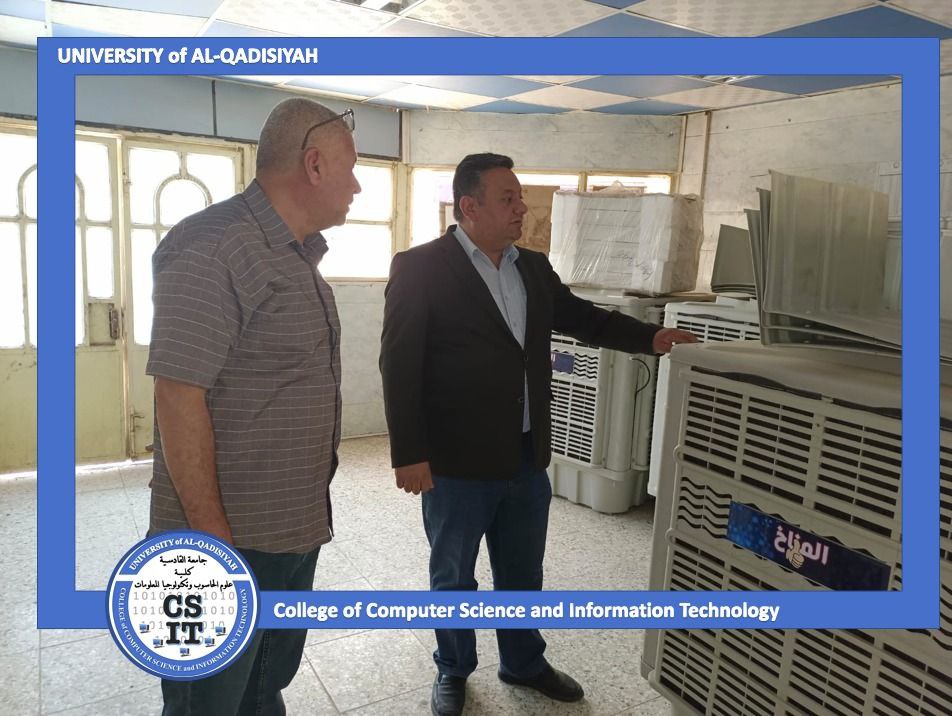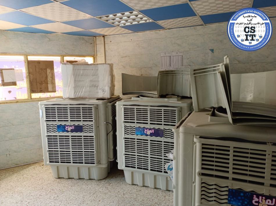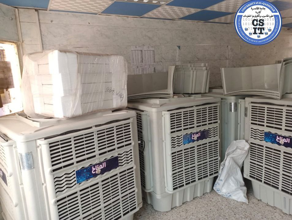 بأشراف مباشر من قبل السيد عميد كلية علوم الحاسوب وتكنولوجيا المعلومات الأستاذ المساعد الدكتور ضياء الشمري وصلت الوجبة الثانية من المبردات الإقتصادية الكبيرة إلى مبنى الكلية إستعداداً لإطلاق مشروع تأسيس منظومة التبريد الإقتصادية وتأسيس الدكتات الهوائية حيث تم تجهيز الكلية بست مبردات كبيرة جداً خصصت للطوابق العلوية في بناية الأقسام العلمية وبناية العمادة.