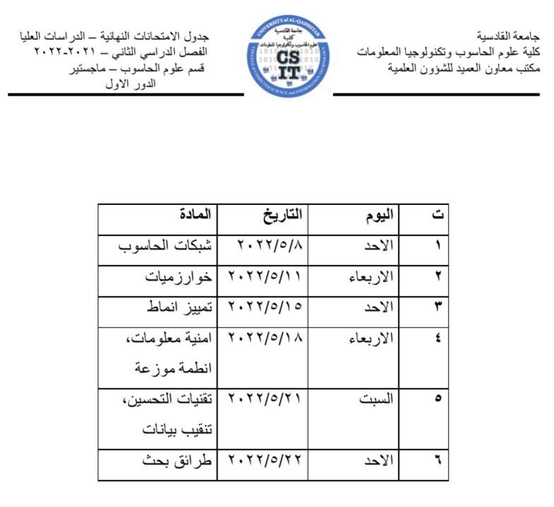 تتقدم عمادة علوم الحاسوب وتكنولوجيا المعلومات بخالص الامنيات لكم بالنجاح والتميز