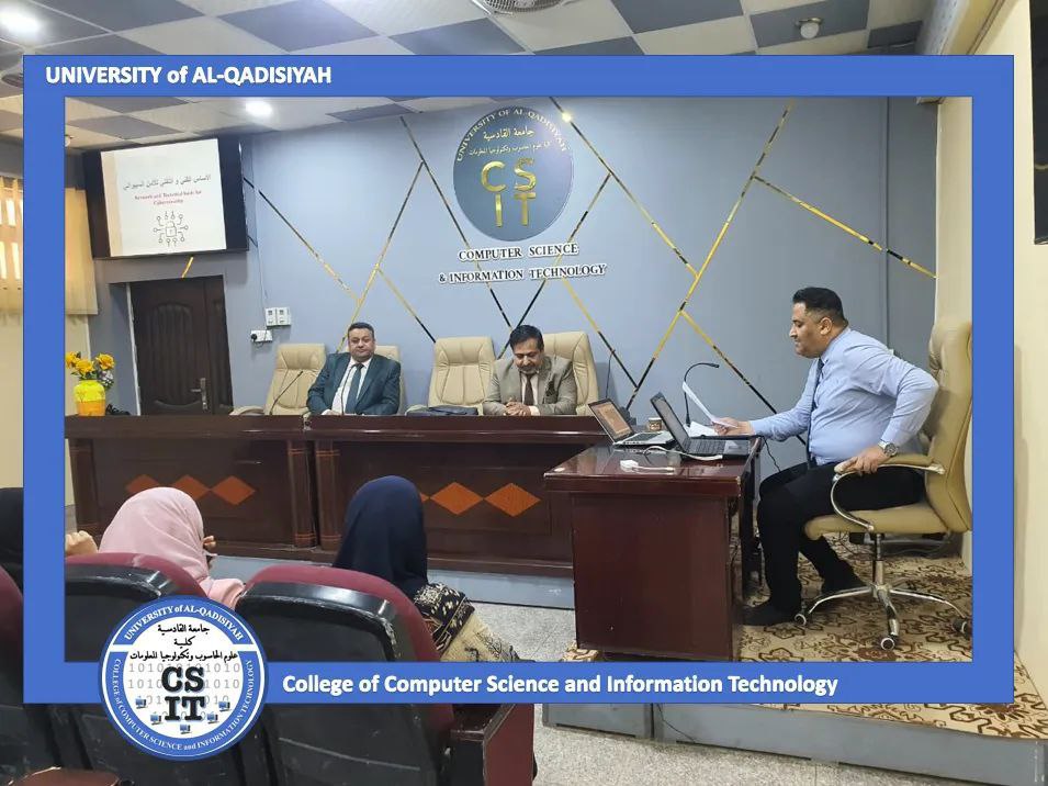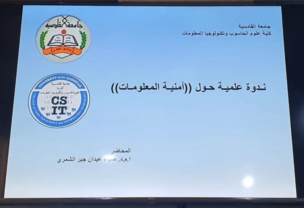 أقامت كلية علوم الحاسوب وتكنولوجيا المعلومات ندوة علمية حول الأمن السبراني كمقدمة تقنية وتحدياته والحلول المستقبلية بالمساهمة مع جامعة الكوفة كلية علوم الحاسوب والرياضيات متمثلة بالأستاذ الدكتور صلاح عبد الهادي البيرماني، وكان السيد عميد الكلية الأستاذ المساعد الدكتور ضياء عيدان جبر الشمري محاضرا في محور الشفرات الأمنية الحالية ونقاط الضعف وطرق كسر الشفرات معرِّجا على الحلول المستقبلية المتمثلة بالشفرات الحديثة المخصصة لمواجهة الحواسيب الكمية المستقبلية، ولقد افتتح الأستاذ الدكتور صلاح عبد الهادي الجلسة مبيّنا نطاق عمل الأمن السبراني ومحاوره واتجاهاته و أهميتها في حياة المجتمع والدولة، وكان لإدارة الجلسة التي عُهِدت إلى الدكتور أحمد محسن مهدي (التدريسي في قسم علوم الحاسوب) يدا في نجاحها.
