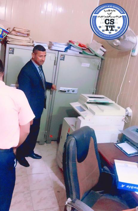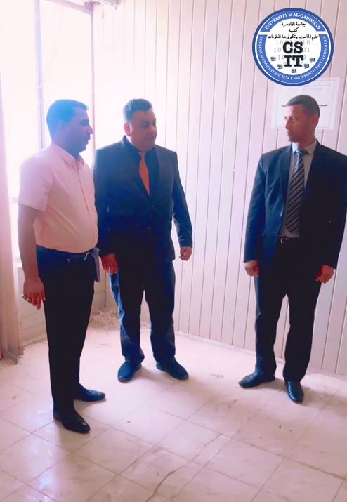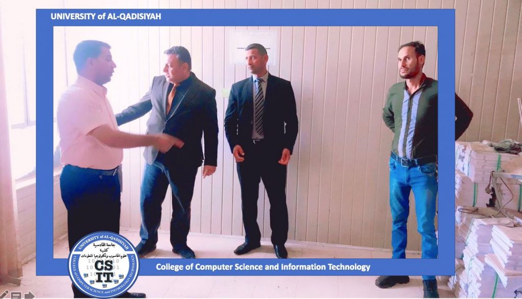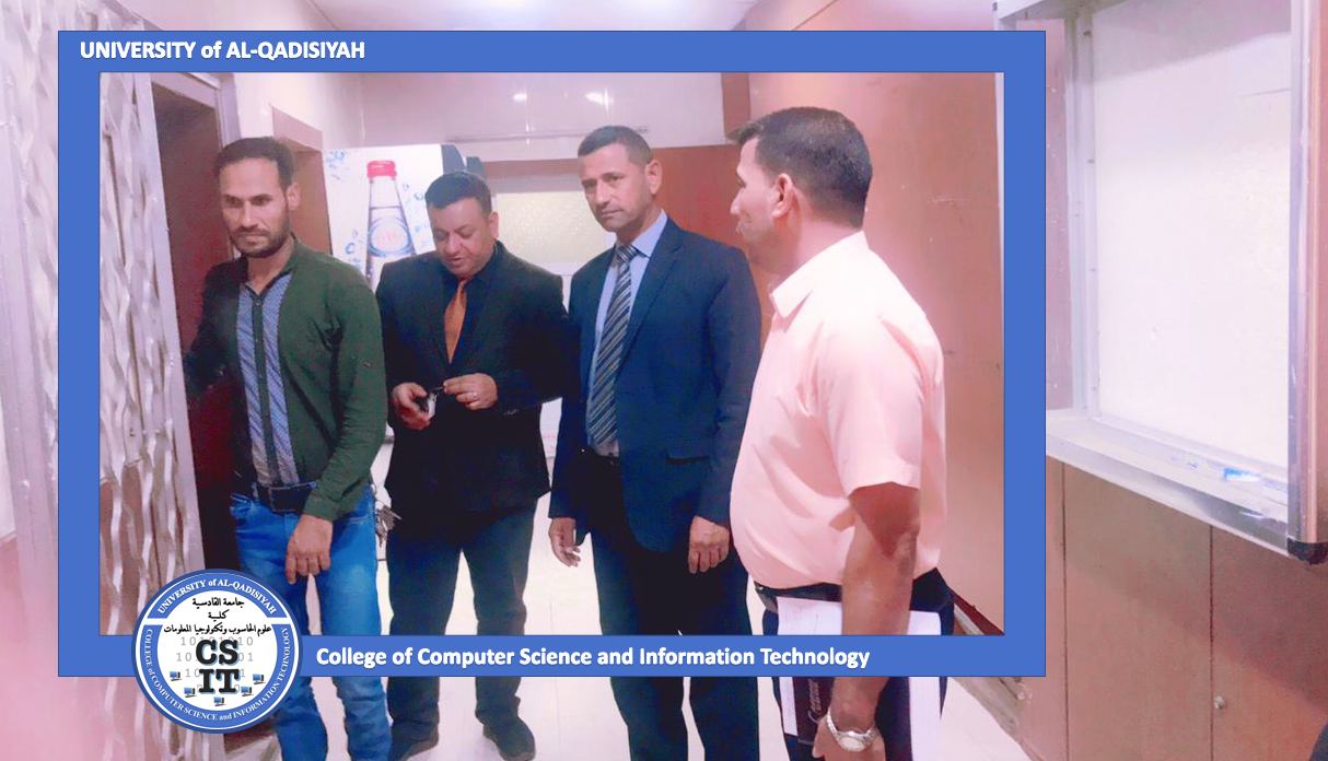 إستقبلت عمادة كلية علوم الحاسوب وتكنولوجيا المعلومات متمثلة بالسيد العميد الأستاذ المساعد الدكتور ضياء الشمري لجنة رئاسة جامعة القادسية الخاصة بتفقد واستعراض مستوى أداء اللجان الإمتحانية في كليات الجامعة برئاسة السيد مساعد رئيس الجامعة للشؤون العلمية الأستاذ الدكتور رحيم الحمزاوي بمعية الأستاذ الدكتور علي عطشان.