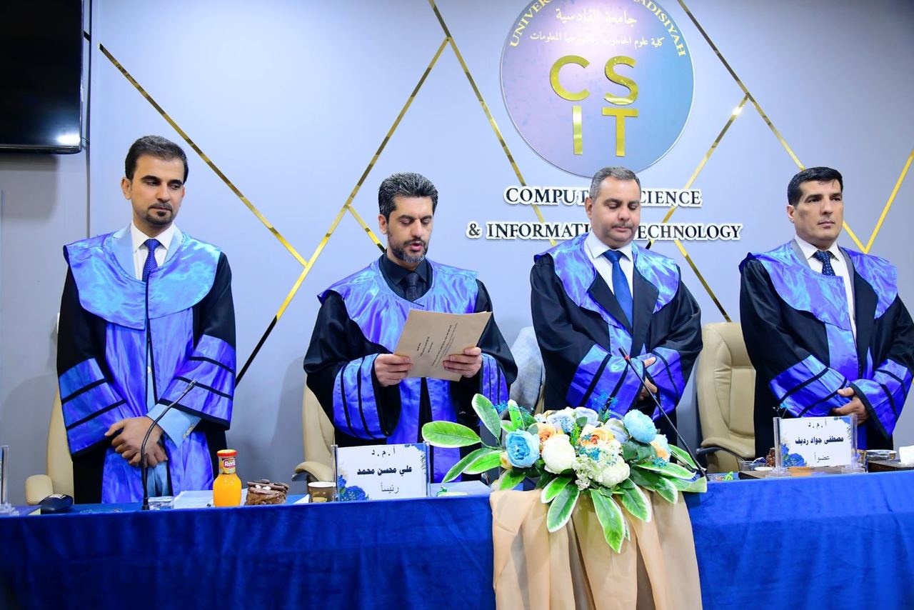 أ.م.د قصي عمران موسى من جامعة القادسية/ كلية علوم الحاسوب وتكنولوجيا المعلومات – عضوا ومشرفا.