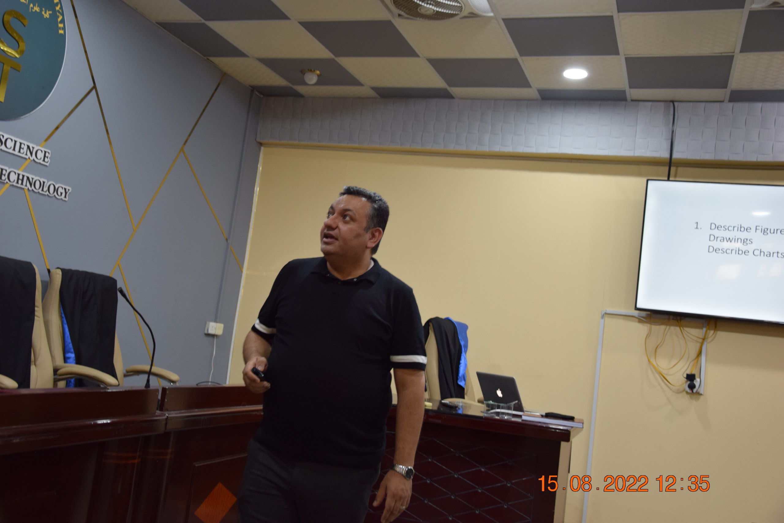 لقد شهدت المحاضرة تفاعلا كبيرا من قبل الطلبة والباحثين، حيث تبادلوا الأسئلة والإستفهامات في حوار علمي ثرّ عرض المحاضر خلاله مفردات الدورة المكثّفة وماستتضمنه المحاضرات اللاحقة كما بيّن أن المفردات المنهجية للدورة تم اعتمادها على وفق المفردات العلمية المتبعة في مراكز اللغة الأكاديمية العالمية مثل مركز تطوير اللغة الأكاديمية لجامعة ستانفورد وجامعة أم أي تي الأمريكيتين وعدّة جامعات عالمية حول العالم مثل كامبرج واكسفورد.