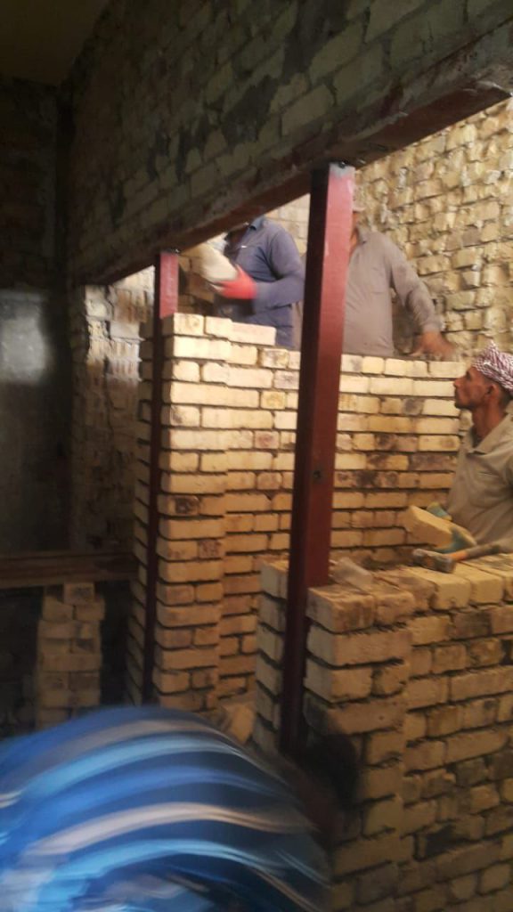 بدأت المباشرة بأعمال البناء والتأهيل بعد إكمال رفع الأنقاض في ظل متابعة الوحدة الهندسية المباشرة والمكثفة والتي وضعت المعالجات اللازمة للأضرار الموجودة، ومن الجدير بالذكر أن إجراءات مهندسي الكلية جاءت على وفق سياسة العمادة والأولويات المقررة في إعتماد المتانة في وضع المعالجات الهندسية مع مراعاة الحداثة في التصميم وبأجود المواصفات، ولقد أبدى المهندسون التنفيذيون إرتياحهم لسرعة التنفيذ والدقة في الأعمال… والله الموفق.