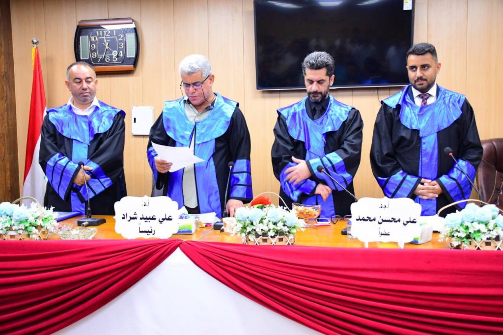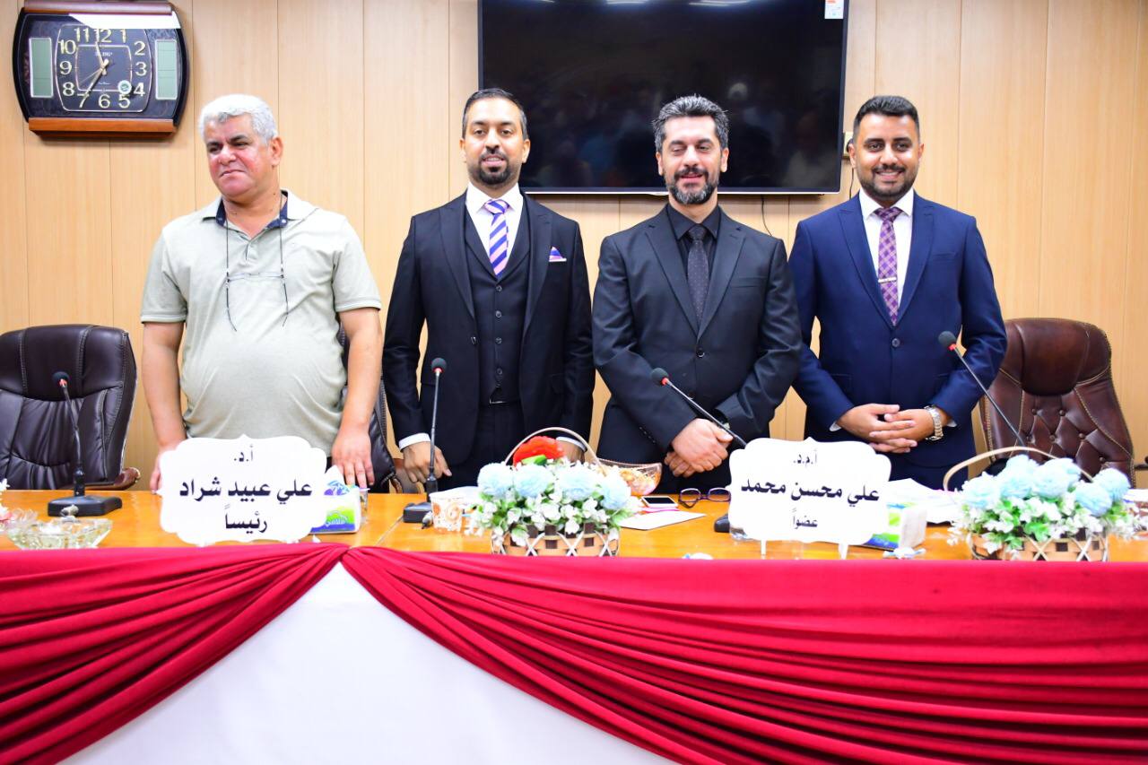 لقد تمت المناقشة العلنية يوم الأربعاء المصادف 7/9/2022 في كلية علوم الحاسوب وتكنلوجيا المعلومات،حيث ترأس لجنة المناقشة الأستاذ الدكتور علي عبيد شراد من جامعة القادسية/كلية علوم الحاسوب وتكنولوجيا المعلومات، وكان في عضويتها كل من :