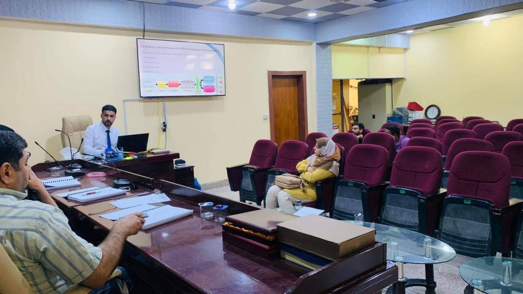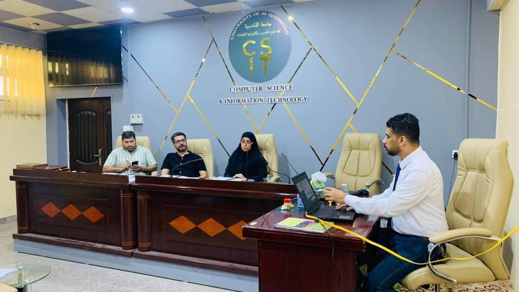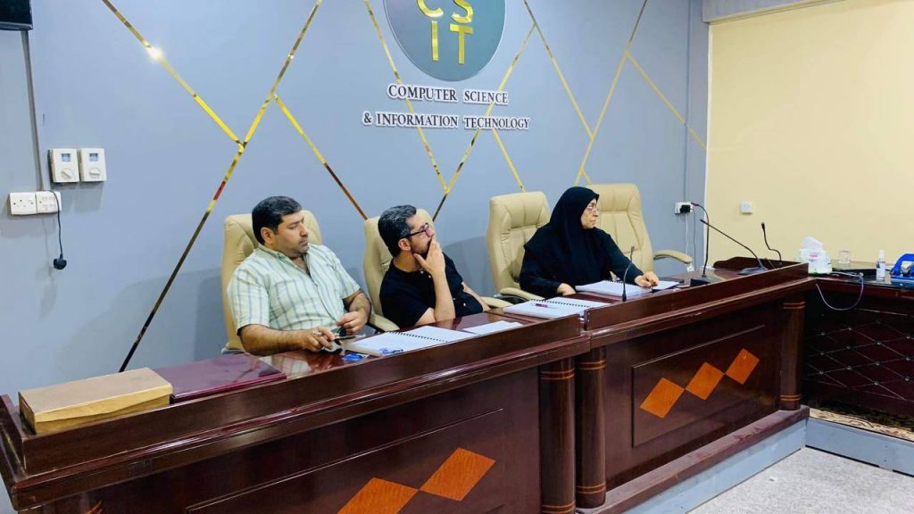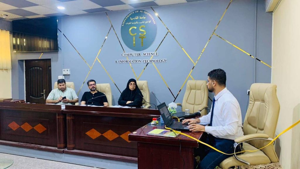 لقد كانت لجنة المناقشة برئاسة أ. م.د علي محسن محمد، وعضوية كل من: أ.م.د علي سعيد دايم، و م.د سلوى شاكر بعيوي وباشراف أ.م.د.رنا جمعة سريح، حيث قدمت اللجنة ملاحظاتها ومقترحاتها للتعديلات النهائية لرسالة الطالب والشروع بالاستعداد للمناقشة النهائية.