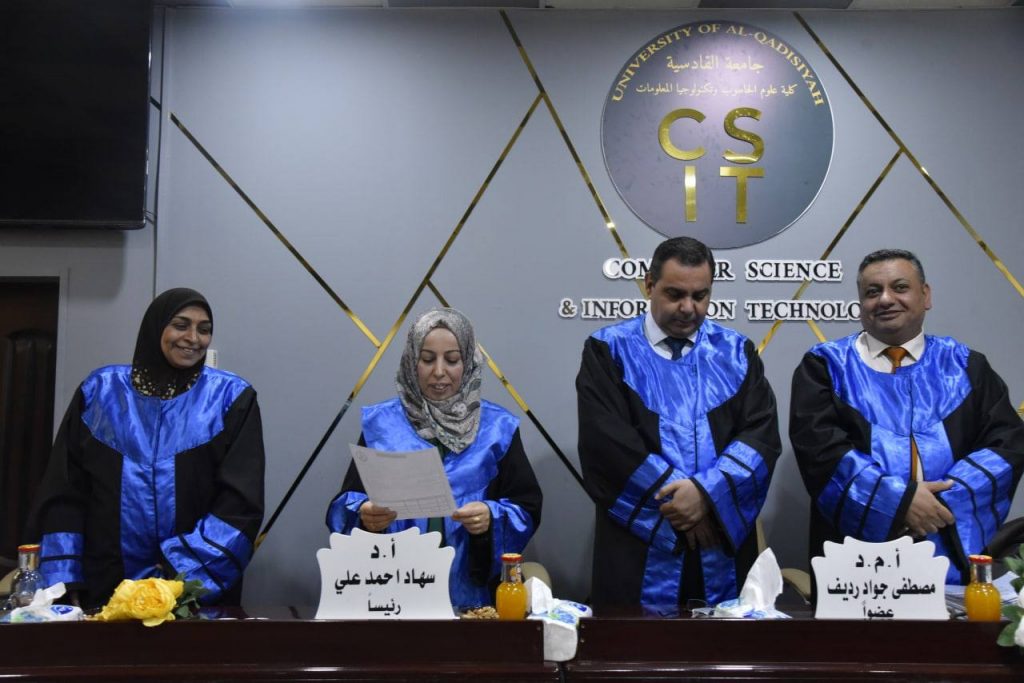 -أ.م.د ضياء جبر من جامعة القادسية / كلية علوم الحاسوب وتكنولوجيا المعلومات(عضوا ومشرفا).