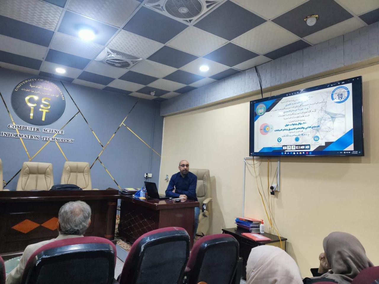 برعاية السيد رئيس جامعة القادسية الأستاذ الدكتور كاظم جبر الجبوري وبأشراف السيد عميد كلية علوم الحاسوب وتكنولوجيا المعلومات الأستاذ المساعد الدكتور ضياء عيدان الشمري؛ عقدت كلية علوم الحاسوب وتكنولوجيا المعلومات / قسم نظم المعلومات الحاسوبية ندوة بعنوان:(100 سؤال وجواب حول التعلم الآلي والتعلم العميق وعلم البيانات) على قاعة الدكتور محمد عباس الجبوري حاضرَ فيها الأستاذ المساعد الدكتور علاء طعيمة عبد الكاظم.