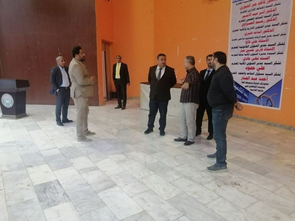 برئاسة السيد عميد كلية علوم الحاسوب وتكنولوجيا المعلومات في جامعة القادسية الأستاذ المساعد الدكتور ضياء عيدان جبر الشمري زار أعضاء اللجان العلمية والإدارية للمؤتمر الدولي الخامس لتكنولوجيا المعلومات(الرياضيات التطبيقية والإحصاء) قاعة نيبور والأجنحة الملحقة بها؛ كونها ستحتضن وقائع المؤتمر الدولي حيث تفقّدت اللجان القاعة الكبرى وأجهزتها السمعية والمرئية، واطّلعت على مواقع الإستراحة والمطعم كذلك تم تفقد جناح سكن الضيوف ومدى جهوزيتها؛ وكان المهندس عبد الحسين مسؤول الموقع في استقبال اللجان وإطلاعهم على خدمات القاعة والأجنحة الملحقة، وتداول الأعضاء في إمكانية دعم القاعة وملحقاتها ورفع جهوزيتها والتنسيق استعدادا لتسجيل مجاميع المتطوعين من الطلبة في لجان الإستقبال والضيافة وتحديد أماكن عملهم داخل القاعة.