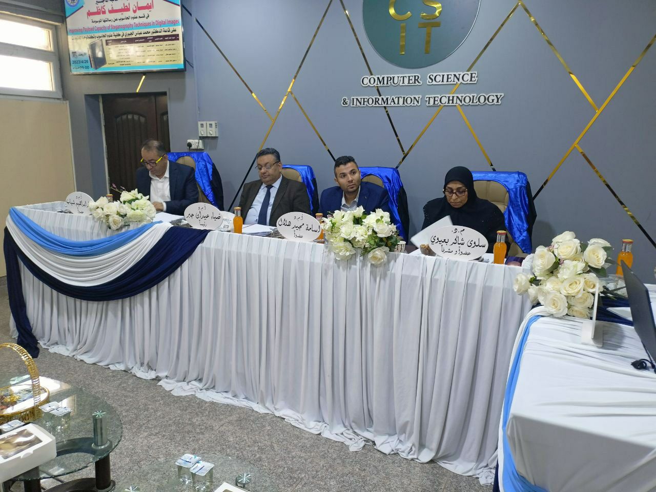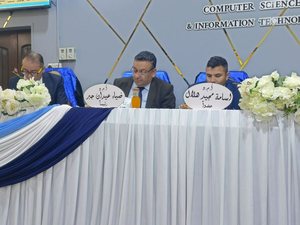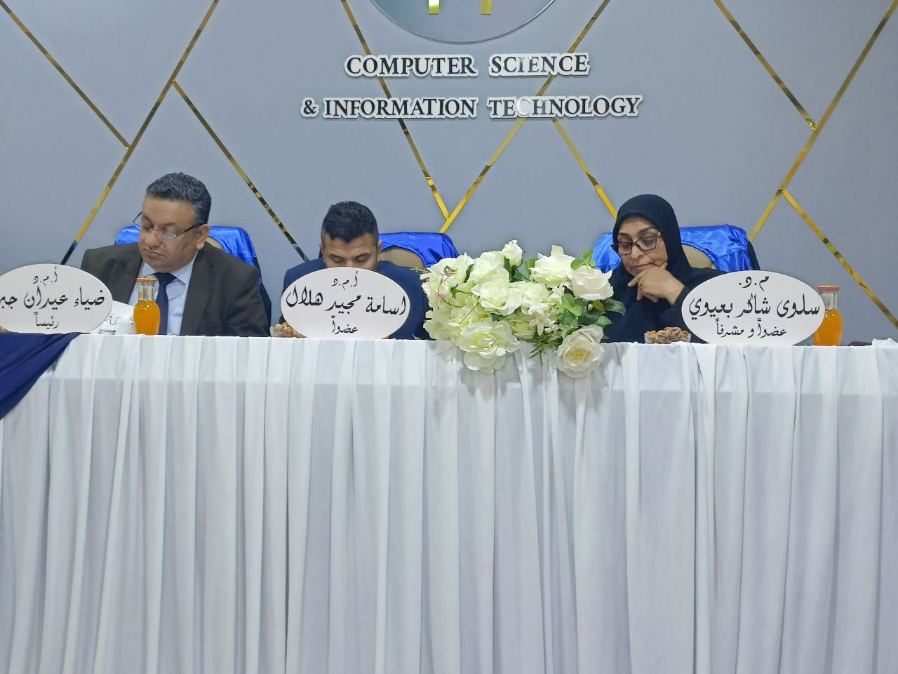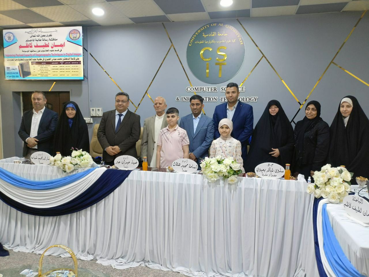 تمت مناقشة طالبة الماجستير إيمان لطيف كاظم عن رسالتها الموسومة ( Improving Payload Capacity of Steganography Techniques in Digital Images ) والمقدمة إلى مجلس كلية علوم الحاسوب وتكنولوجيا المعلومات /قسم علوم الحاسوب، على قاعة الدكتور محمد عباس الجبوري.