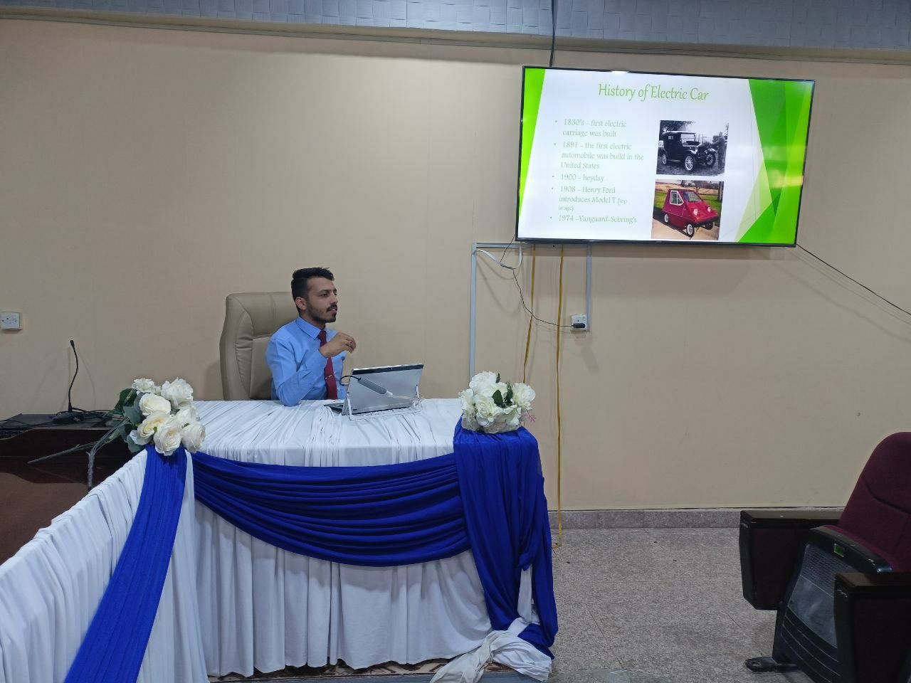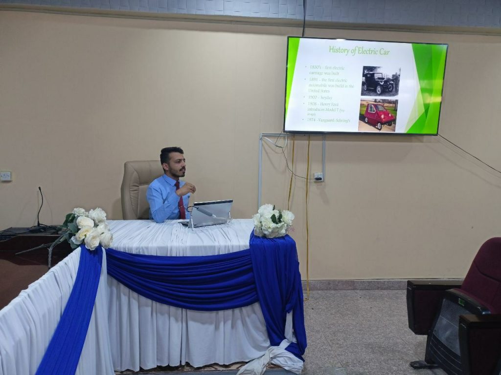 برعاية السيد رئيس جامعة القادسية الأستاذ الدكتور كاظم جبر الجبوري وبأشراف عميد كلية علوم الحاسوب وتكنولوجيا المعلومات الأستاذ المساعد الدكتور ضياء عيدان جبر الشمري أقامت وحدة الأبحاث في الكلية ورشة علمية عن السيارات الكهربائية، أنواعها، مكوناتها، وفوائدها، على قاعة الدكتور محمد عباس الجبوري، ألقى فيها التدريسي م.م مصطفى يحيى حسن محاضرة حول ماهيّة السيارات الكهربائية، ومكوناتها، وطريقة شحنها ومدى تأثيرها في العالم من ناحية الاعتماد على الطاقة النظيفة وتقليل مستويات التلوث الحاصلة بسبب انبعاثات غاز CO2، إلى جانب عددٍ من الميزات الغير موجودة في سيارات الوقود، حيث تعتمد سيارات تسلا الكهربائية على استخدام بطاريات ذات قدرة شحن عالية للطاقة.