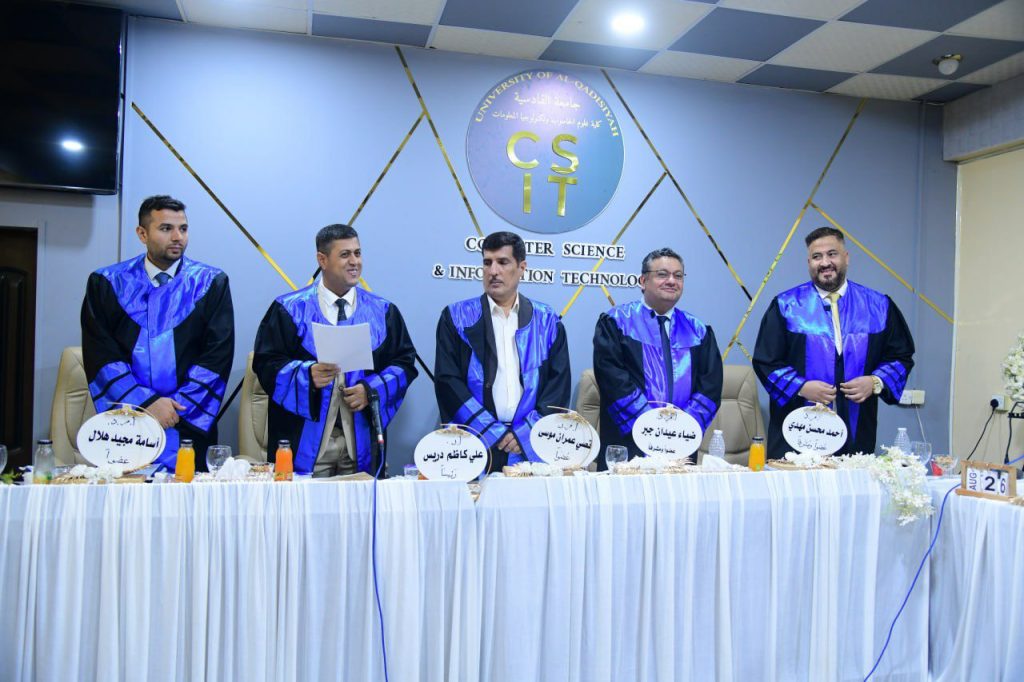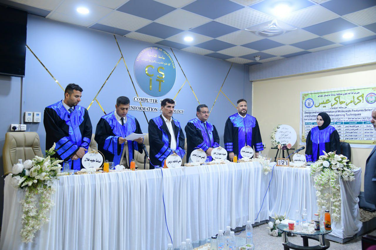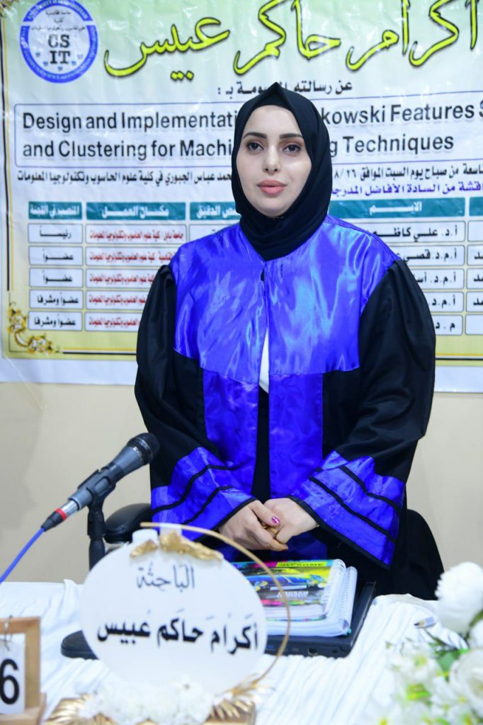 تمت مناقشة طالبة الماجستير إكرام حاكم عبيس حول رسالتها الموسومة (تصميم وتنفيذ منكوفسكي لتحديد الميزات وتجميعها لخوارزميات التعلم الآلي) والمقدمة إلى مجلس كلية علوم الحاسوب وتكنولوجيا المعلومات/جامعة القادسية، تحت إشراف الأستاذ المساعد الدكتور ضياء عيدان جبر الشمري.